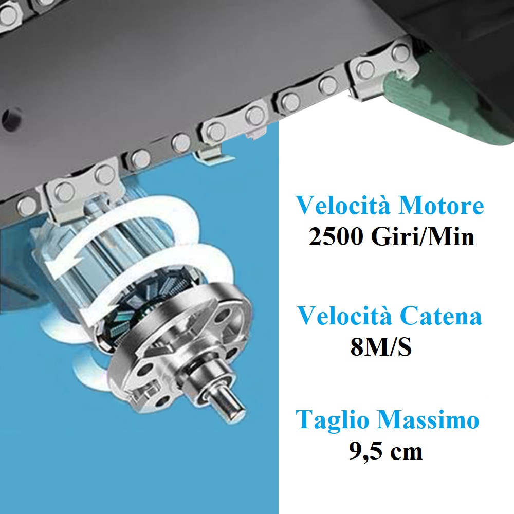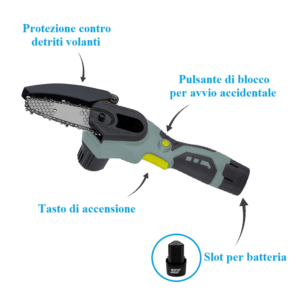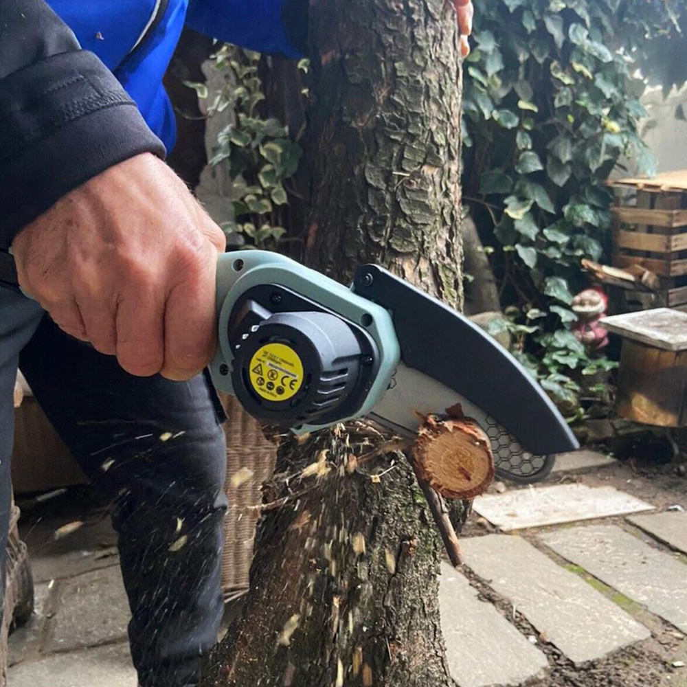 Mini Motosega Elettrica silenziosa con catena, 1500 Ah di batteria da 12 V - Ideale per tagliasiepi e potatura di rami di piccole dimensioni