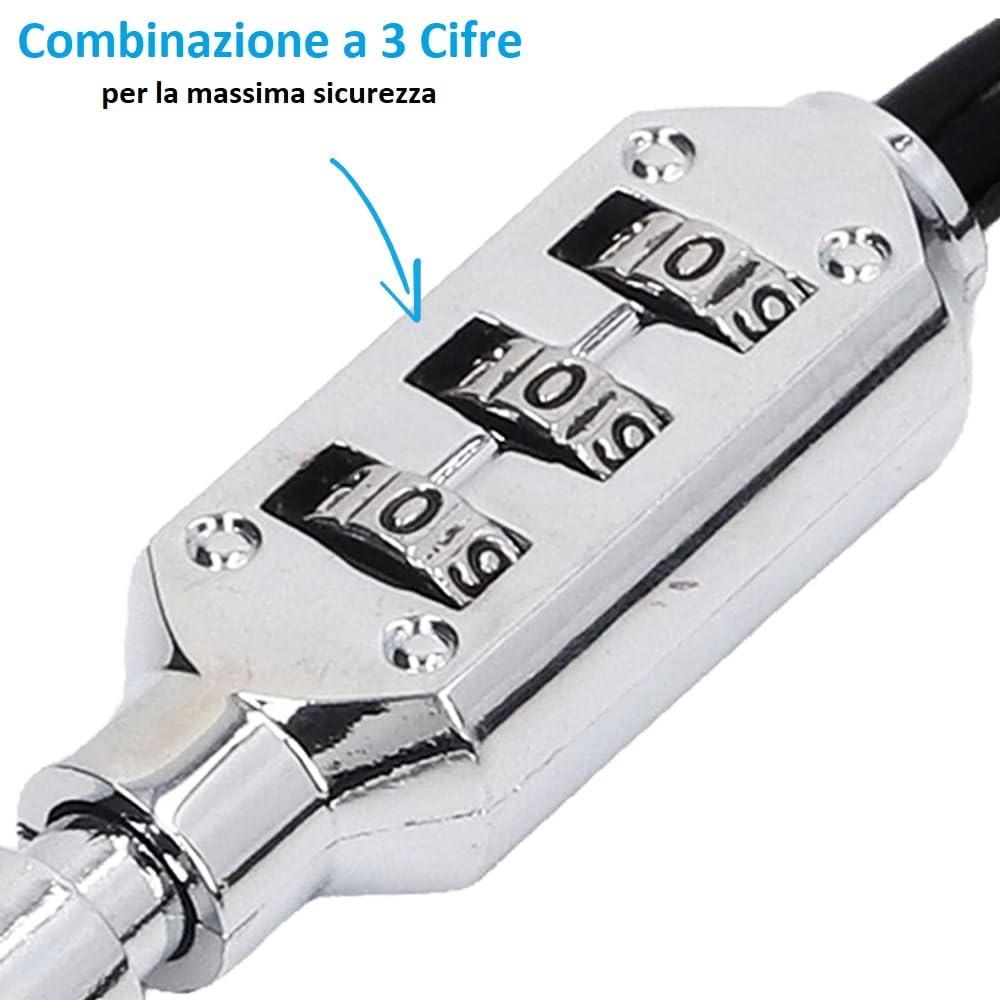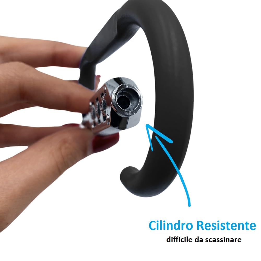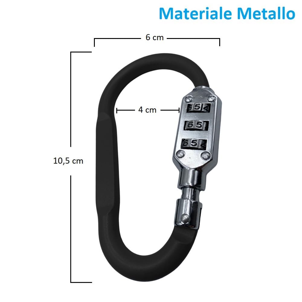 Moschettone con Combinazione di Sicurezza a 3 Cifre - Lucchetto a Codice a Forma di D per Bici, Valigie e Zaini da Viaggio - Nero