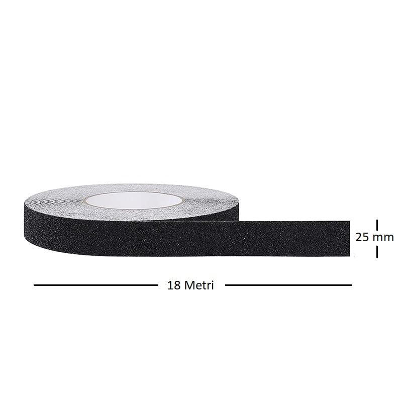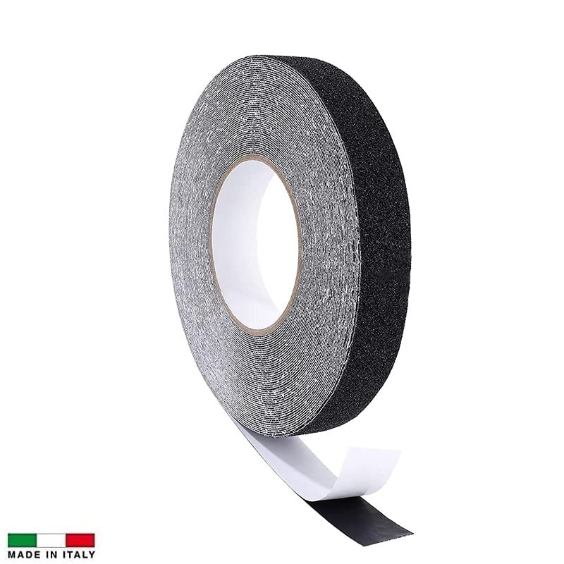 Nastro antisdrucciolo Nero per gradini mis. 25 mm x 18 metri - Rotolo adesivo antiscivolo facilmente ritagliabile