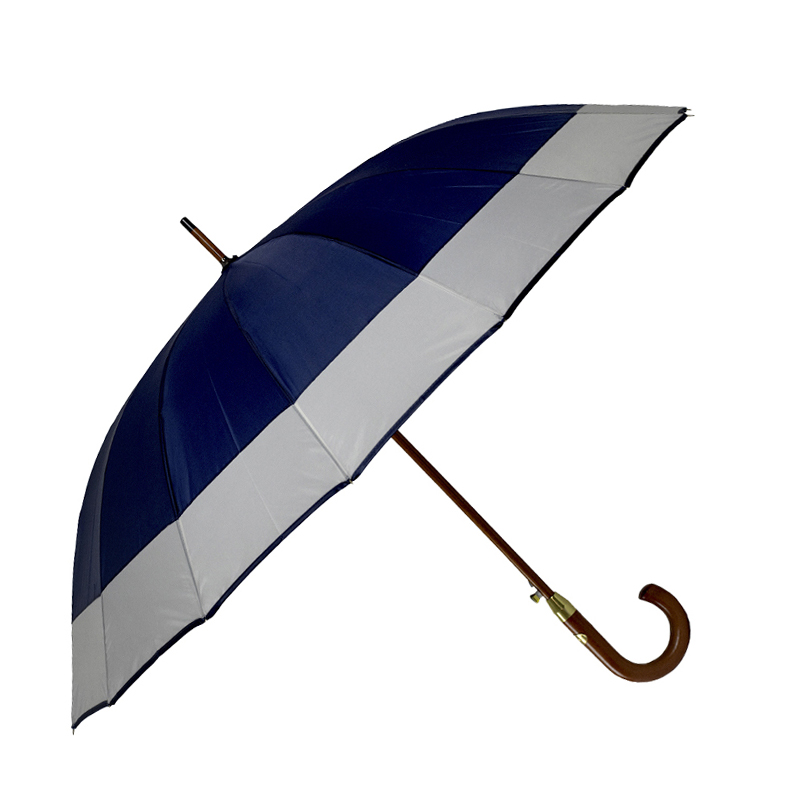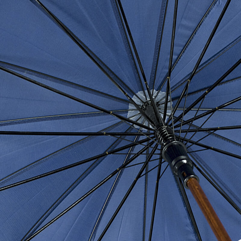 L'ombrello grande a 16 stecche con tessuto in varie colorazioni e con fascia a contrasto, aste e fusto in legno é ideale per proteggerti dalla pioggia nelle giornate invernali.