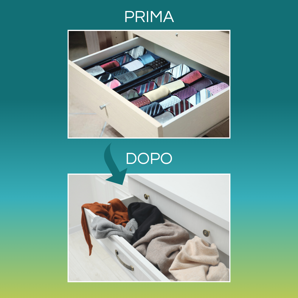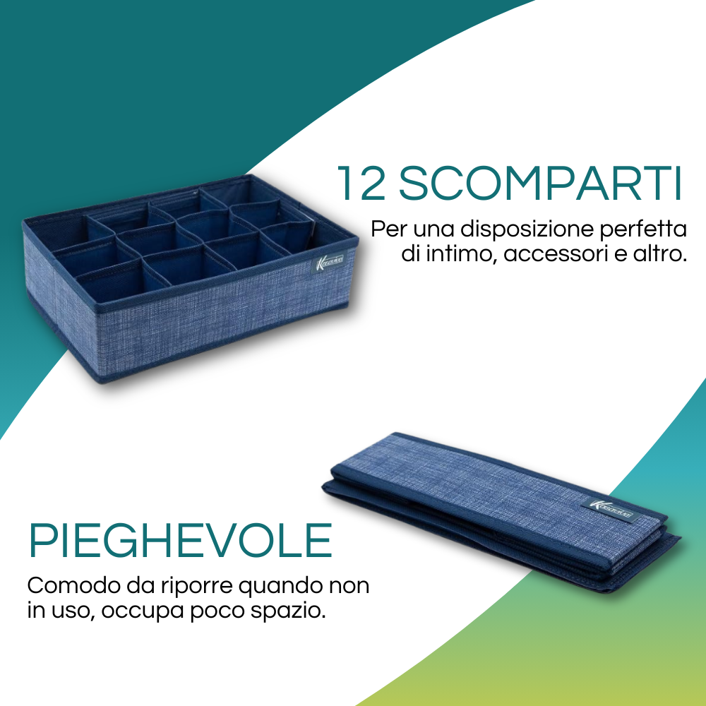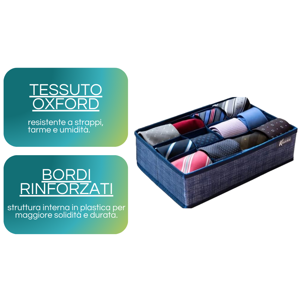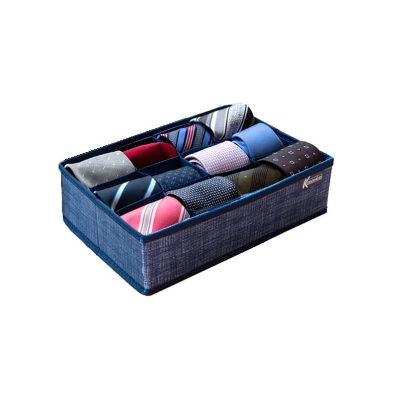 Scatola Portacravatte in tessuto colore blu - Organizer per cassetto armadio a 12 scomparti 32x22x9 cm