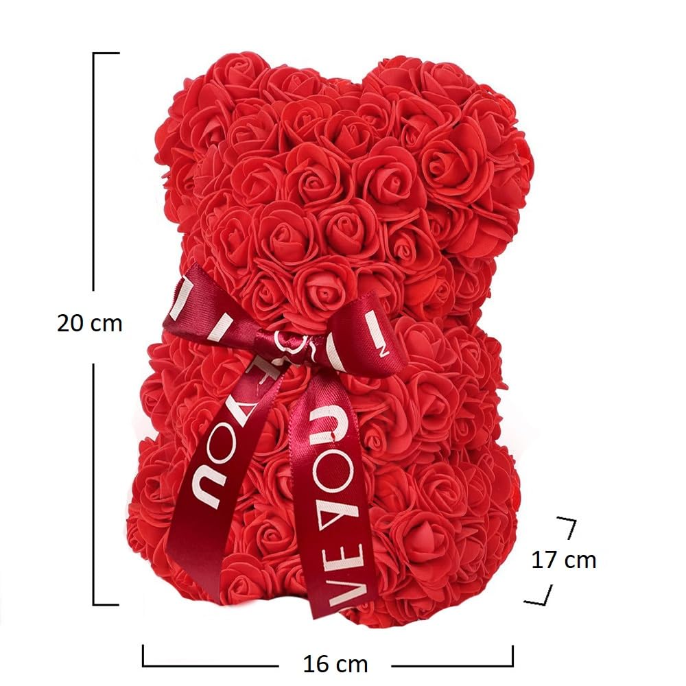 Orsetto di Rose Rosse Finte con LED da 16x17x20 cm