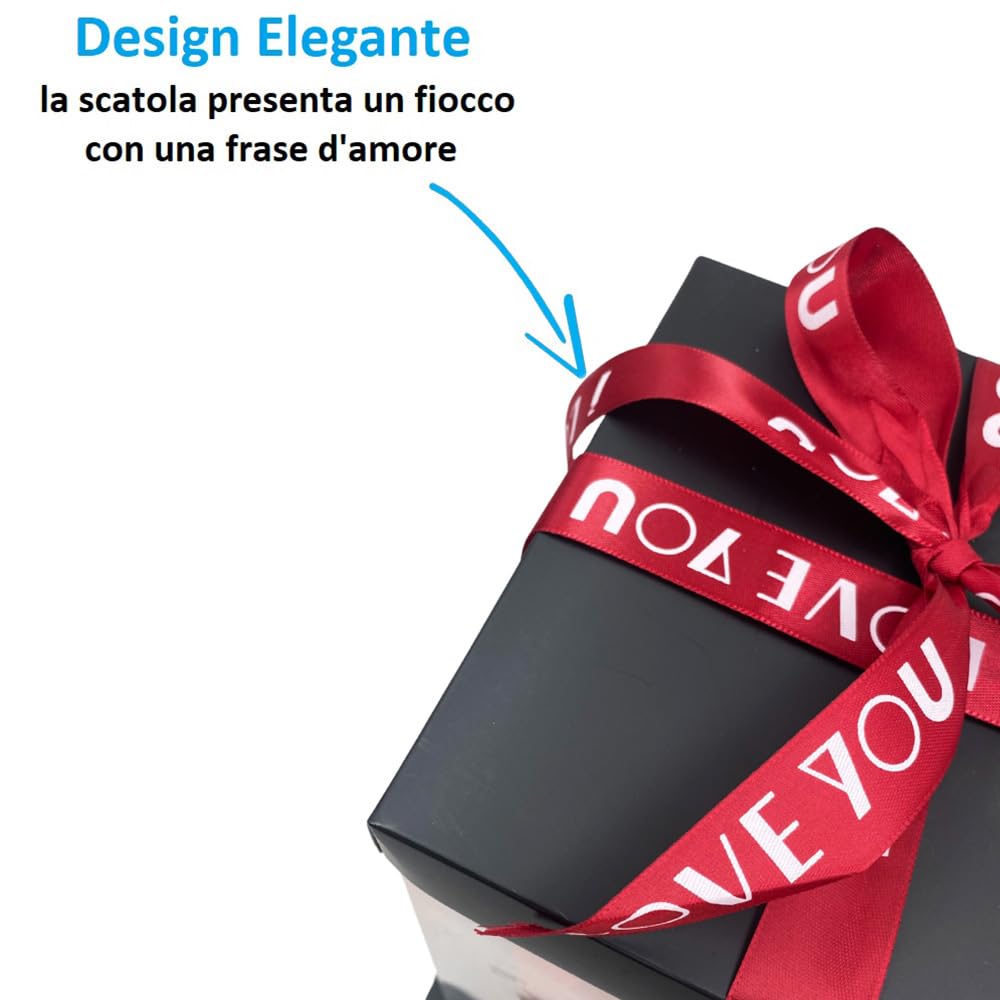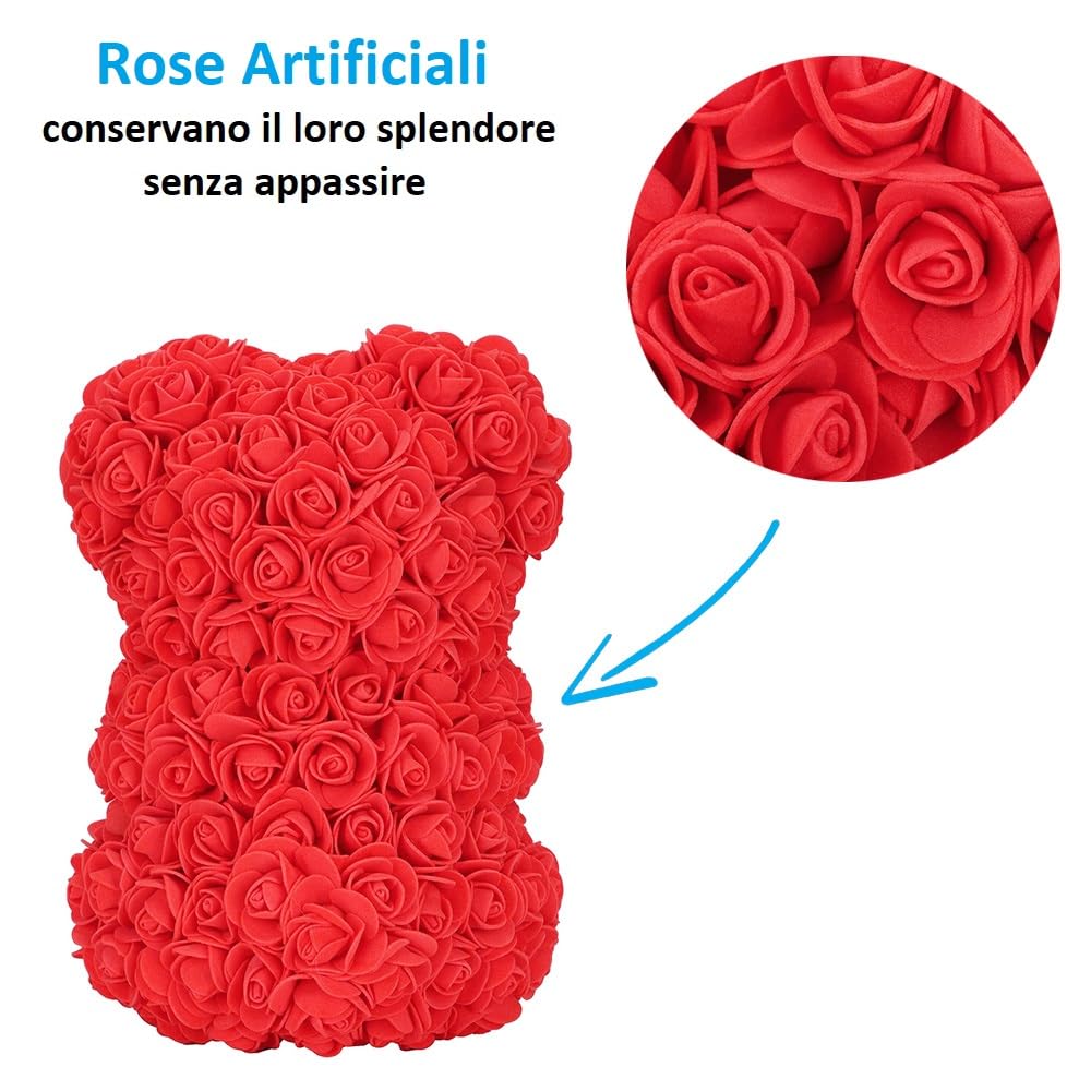 Orsetto di Rose Rosse Artificiali con LED con scatola Regalo Trasparente - mis. 16x17x20 cm - Idea Romantica per San Valentino, Anniversari e Compleanni