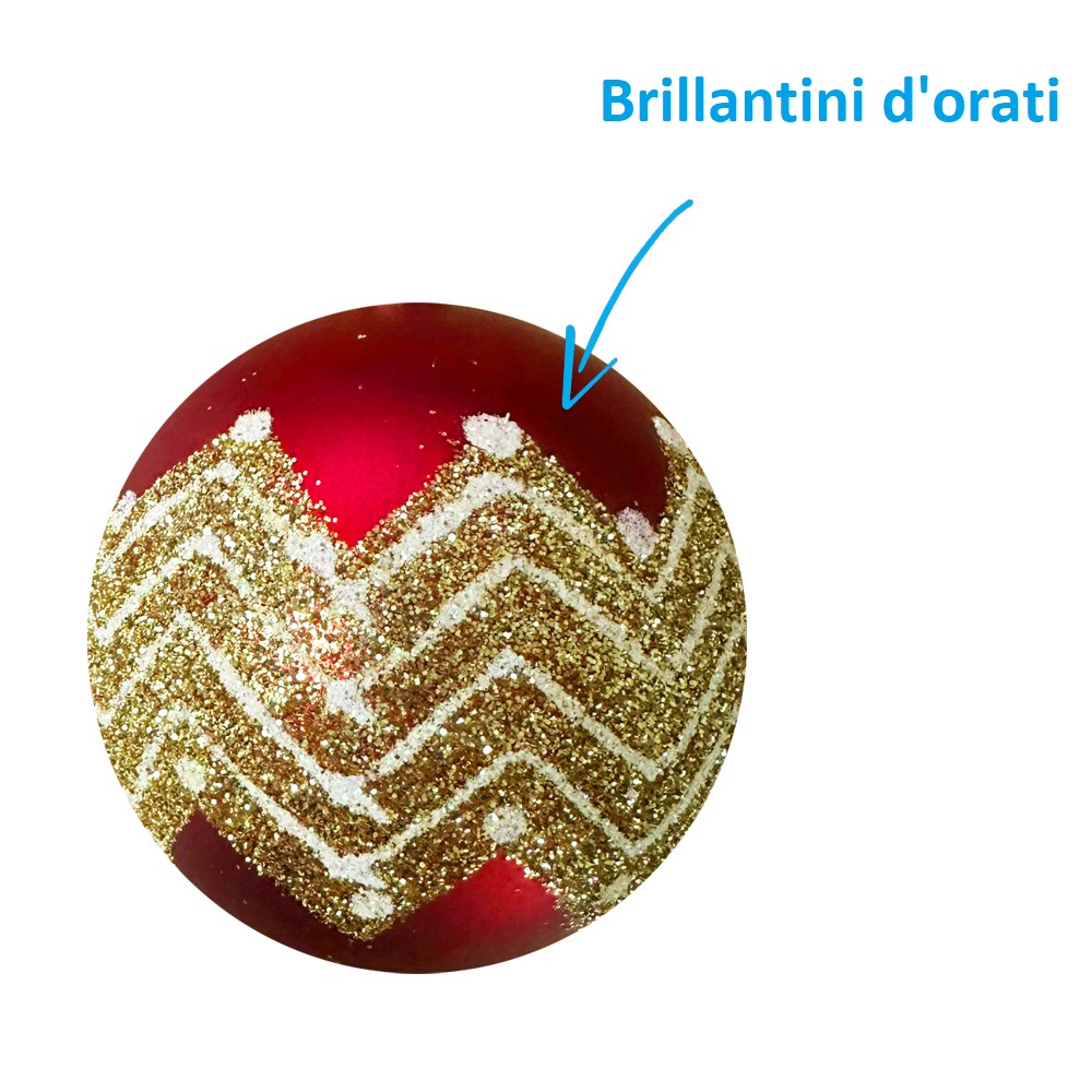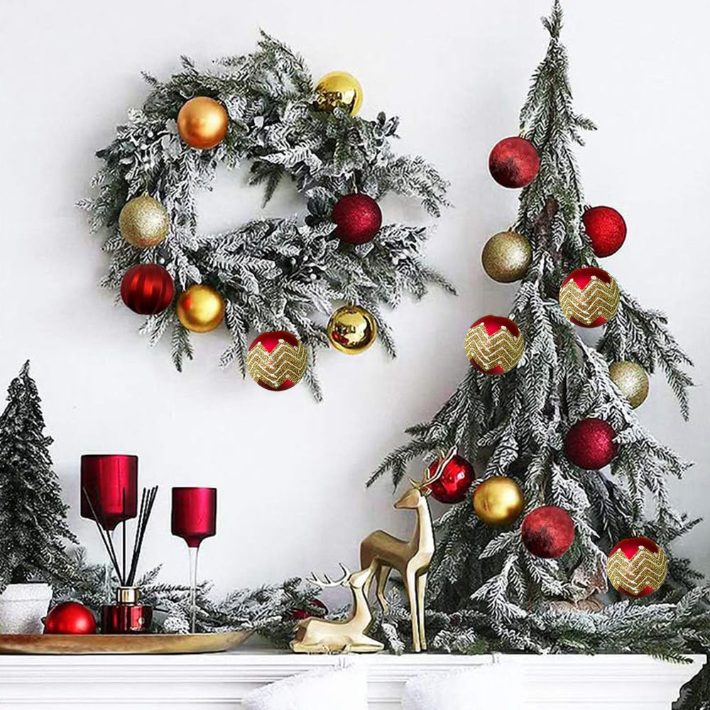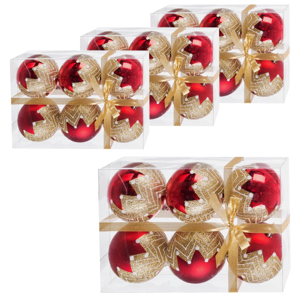 Set da 24 Palline di Natale Rosse con decoro Oro glitterate, opache in plastica Infrangibile diametro 7 cm per albero di Natale
