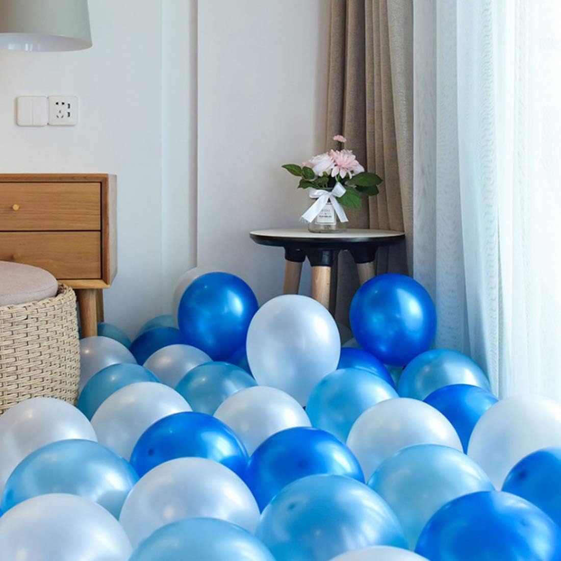50 Palloncini Celeste Metallizzato Gonfiabili, lunghezza 35 cm - Gonfiabili con Aria o Elio per Compleanno, Decorazioni, Festa Bambini, Matrimonio, Eventi