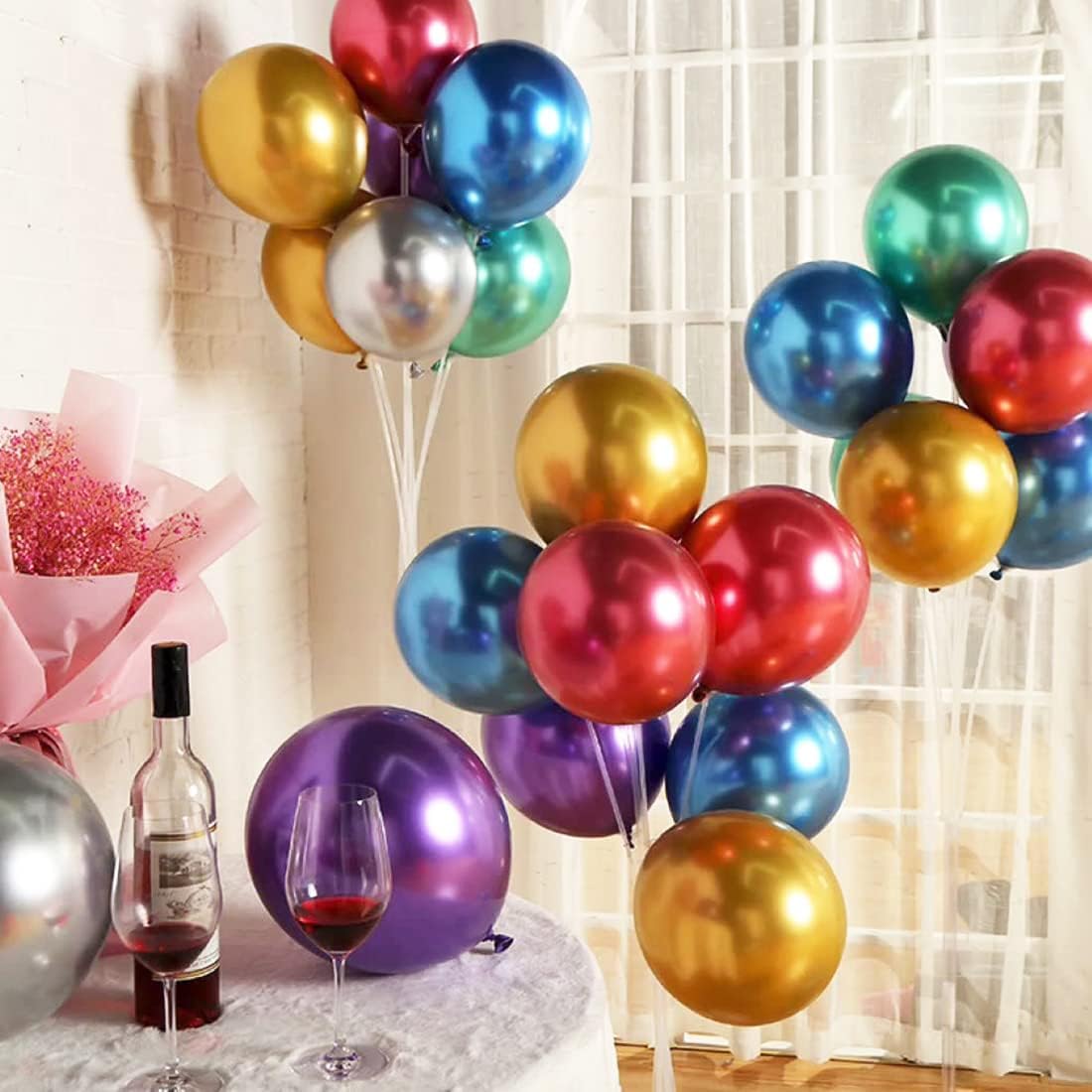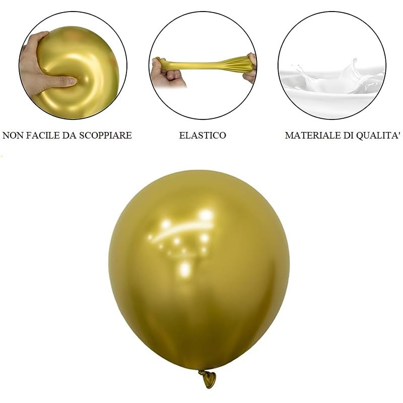 50 Palloncini Multicolor Metallizzati Gonfiabili, lunghezza 35 cm - Gonfiabili con Aria o Elio per Compleanno, Decorazioni, Festa Bambini, Matrimonio, Eventi