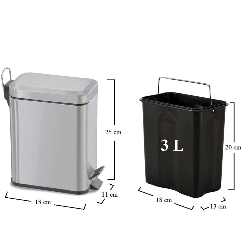 Cestino da bagno in alluminio con capacità di 3 Litri - Misura 18x11x25 cm - Pattumiera rettangolare con pedale per apertura automatica