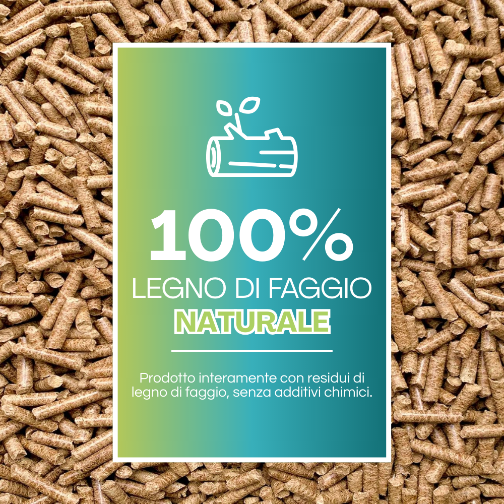 Pellet 100% Faggio di classe A1 in puro legno di faggio, completamente naturale e riciclato. Ideale per stufe a pellet. Prodotto con scarti di segature e di lavorazione del legno di Faggio. Evitando abbattimenti di alberi si rispetta l’ambiente e non è nocivo.