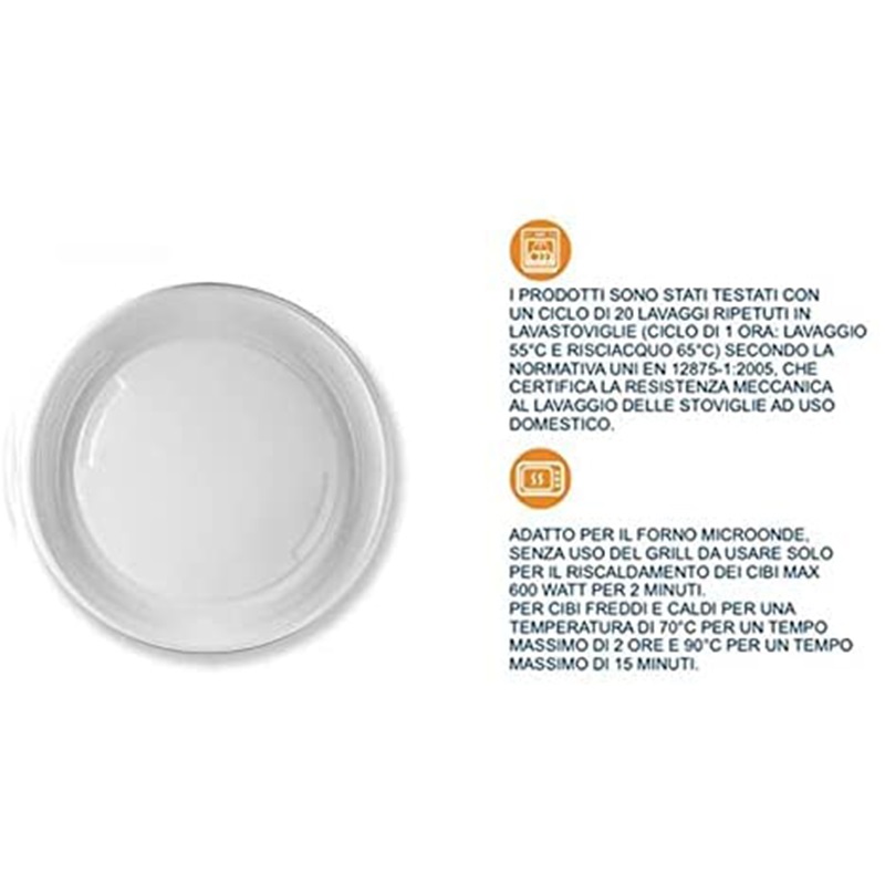 - Testati per 20 lavaggi ripetuti in lavastoviglie