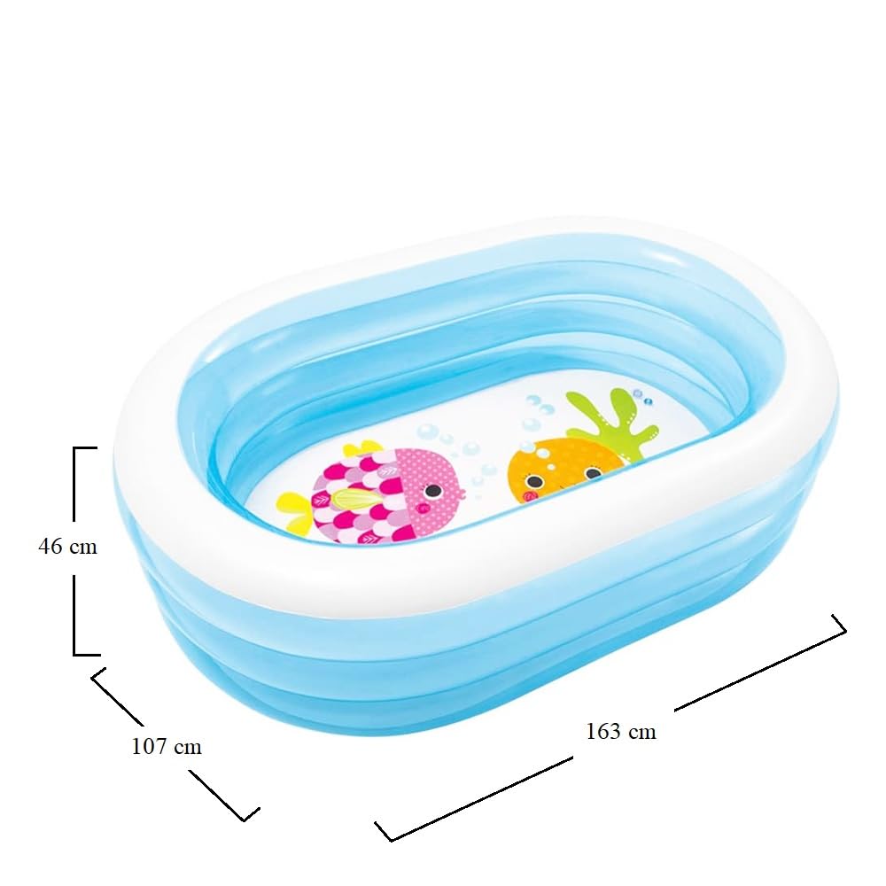 Piscina gonfiabile con misura 163x107x46 cm - Piscinetta per bambini in PVC a 3 anelli gonfiabili - Rettangolare con Pesciolini Colorati