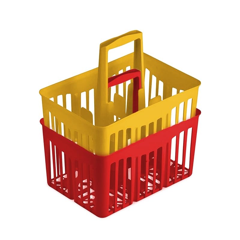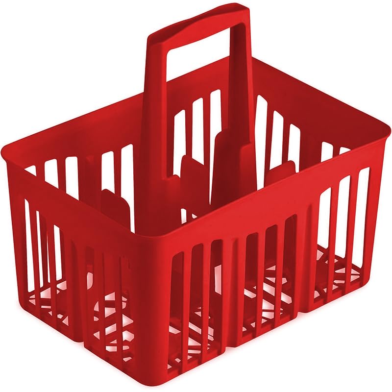 Un cestello portabottiglie di colore Rosso, misura 32x22x35 cm, ideale per trasportare comodamente fino a 6 bottiglie di acqua. Il prodotto è indispensabile per riempire le bottiglie di acqua ad una sorgente o alla casa dell'acqua così da poterle trasportare con facilità e comodità.