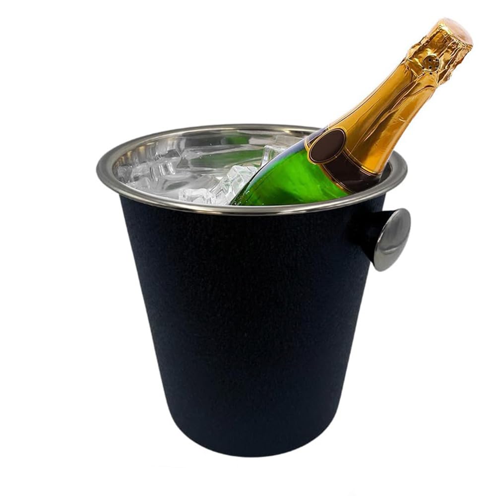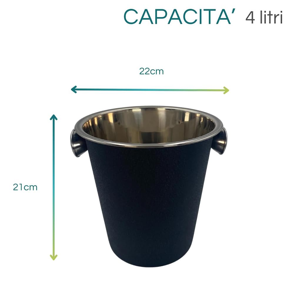 Secchiello Portaghiaccio in Acciaio Inox Nero - Dimensioni 22x21 cm e capacità da 4 Litri – Contenitore ghiaccio con Maniglie per Vino e Champagne
