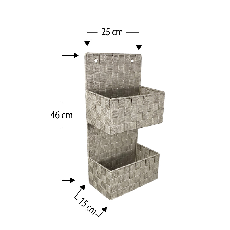 Portaoggetti da parete in stoffa a 2 Piani 25x15x46 cm