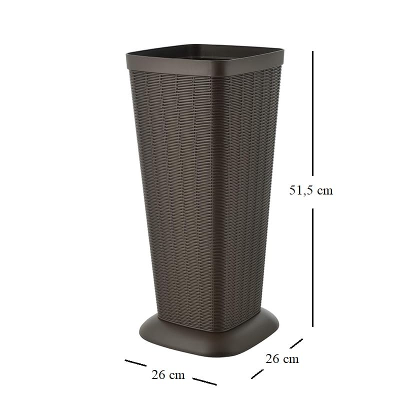 Portaombrelli in plastica alto effetto Rattan 26x26x51,5 cm – Marrone