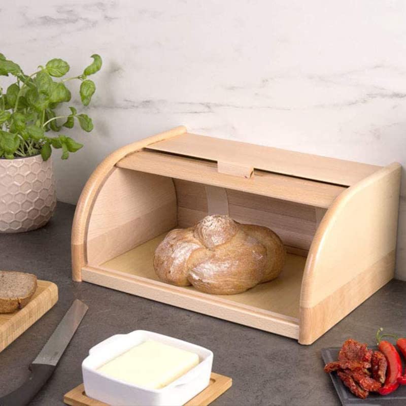Portapane in Legno di Faggio da 39x25x18 cm - Contenitore con coperchio Arrotolabile e Box con apertura frontale per conservare e proteggere il pane fresco