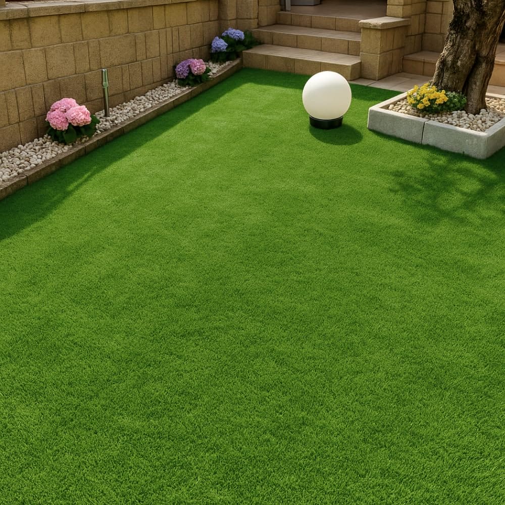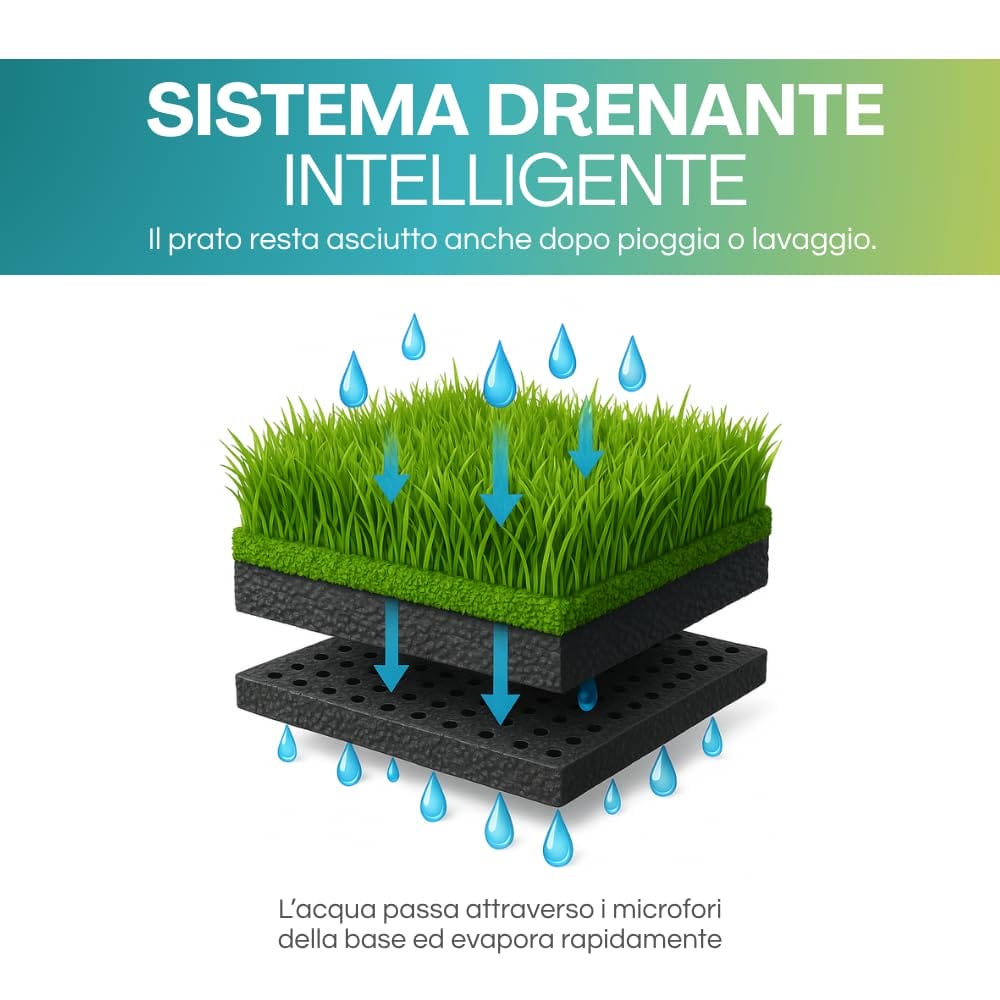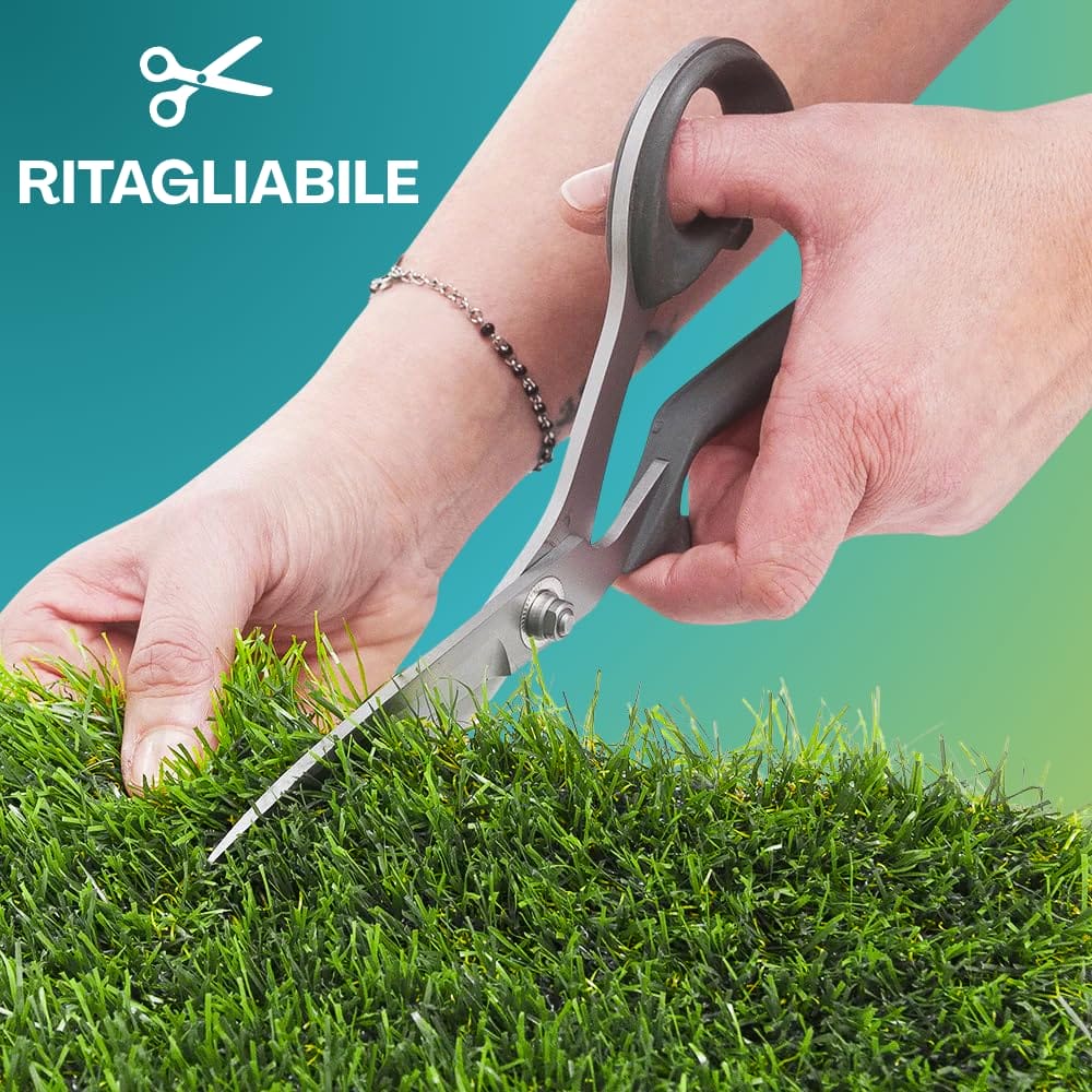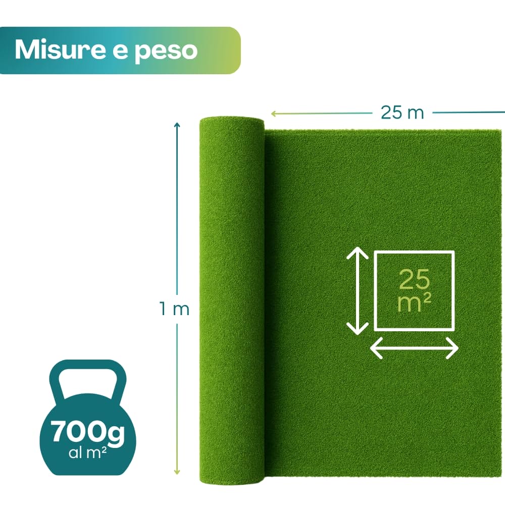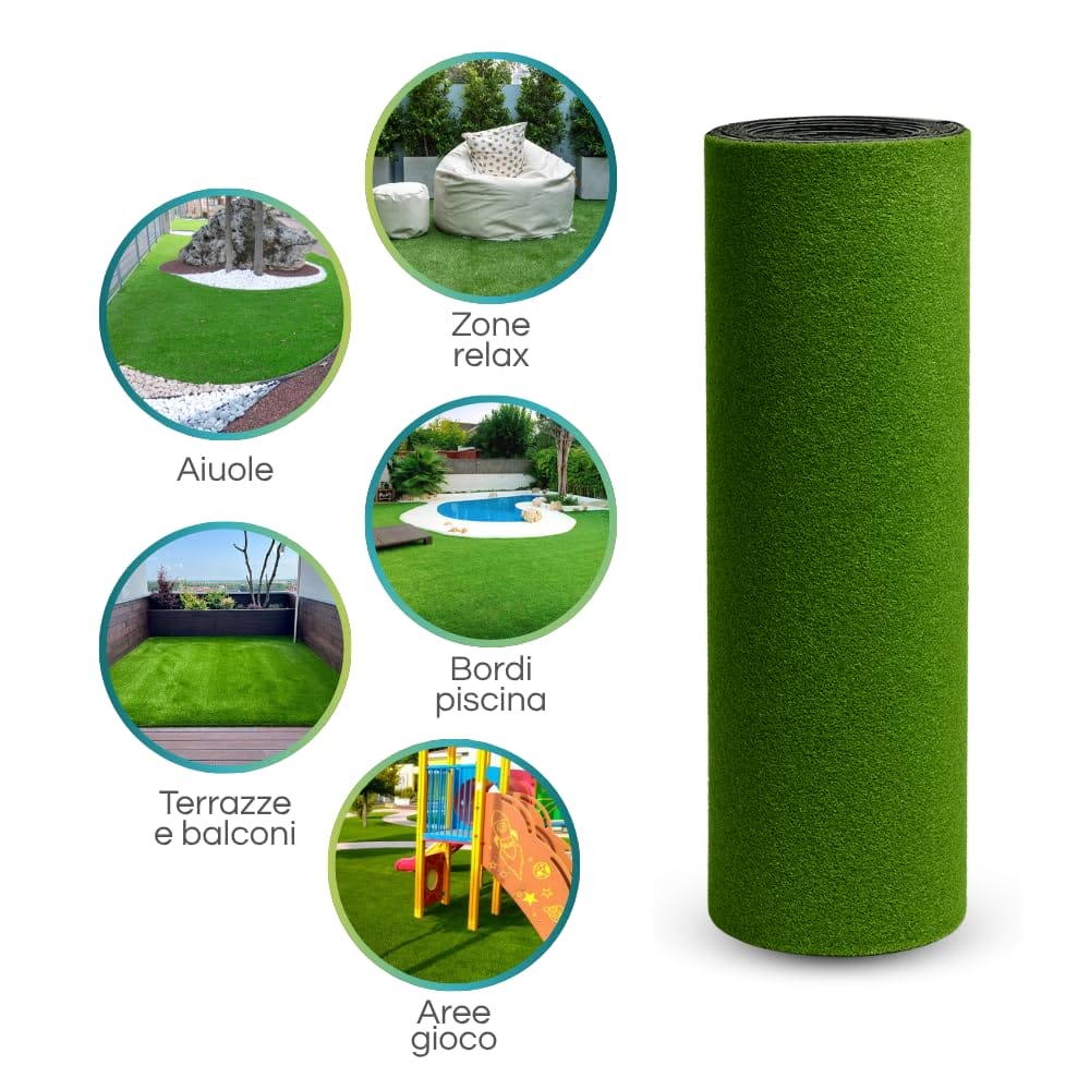 Rotolo Prato con Erba finta alta 7mm; Giardino Sintetico per uso Indoor e Outdoor. Manto Erboso Calpestabile in Polimero Plastico ad alta densità cuciti su Supporto Drenante. Il prato è composto da filamenti in polimero plastico ad alta densità cuciti su supporto drenante.