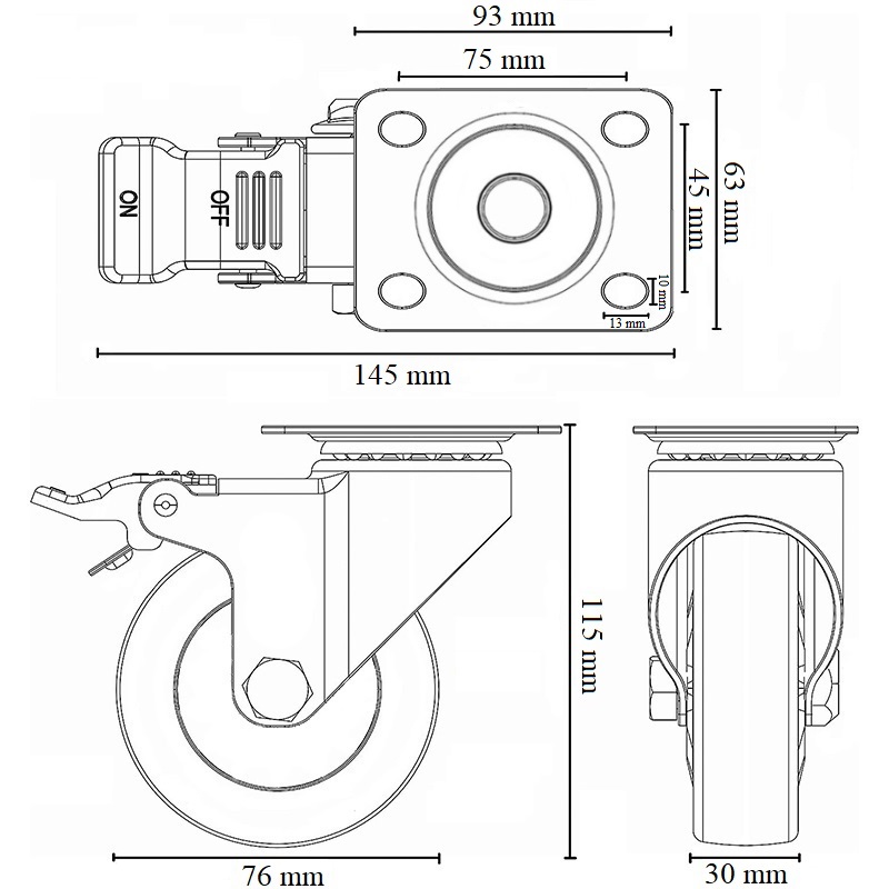 Set 4 Ruote girevoli per carrelli portata 400 kg