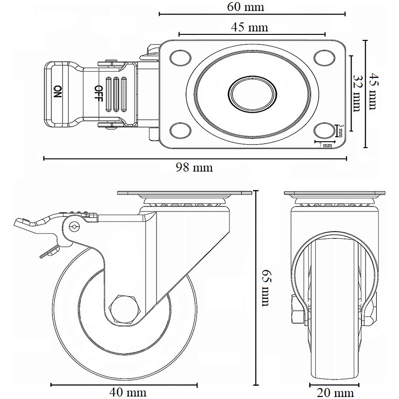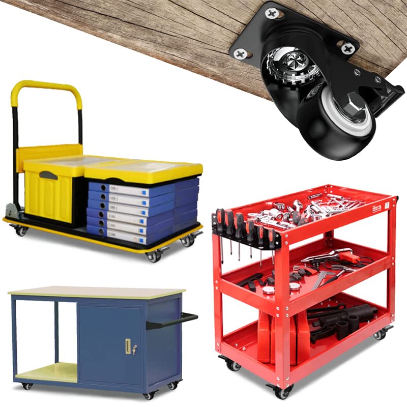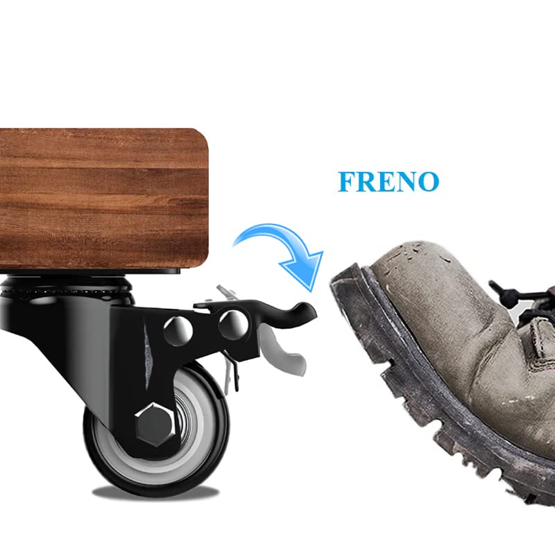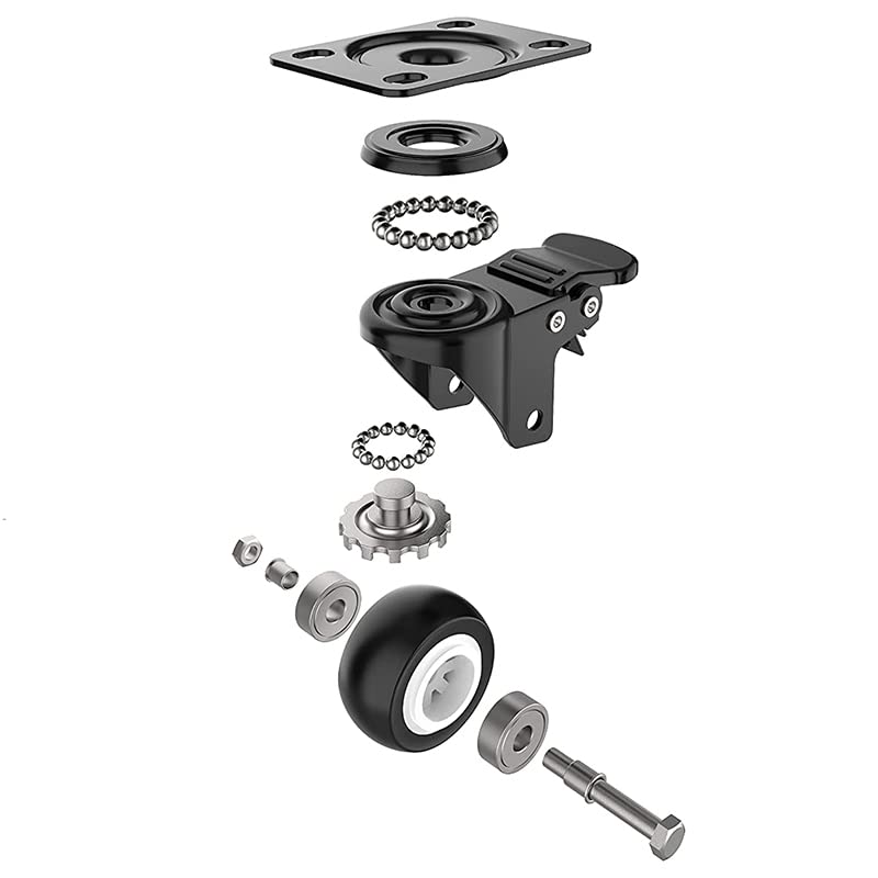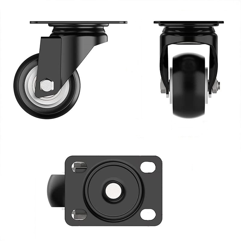 SET 4 Ruote per carrelli e mobili nere da 40 mm - Ruote piroettanti a 360° con portata max di 180 kg - 2 ruote con freno e 2 senza