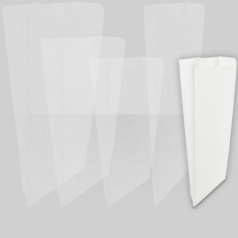 Questi sacchetti di carta kraft bianca sono comunemente utilizzati nei bar, nei panifici, nelle rosticcerie per l'asporto di cornetti, pizzette, rustici, pane e prodotti simili.