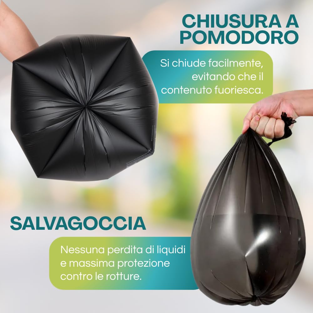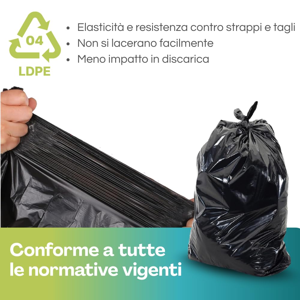 I sacchi neri sciolti per la raccolta differenziata sono costituiti da LPDE che permette ai sacchetti di essere riciclabili ed elastici. Disponibili in colorazione nera, e in diverse misurazioni. I nostri sacchi neri sciolti sono efficientissimi vista la loro saldatura inferiore rinforzata garantendo la non fuoriuscita di liquidi così da aumentare la resistenza alla rottura.