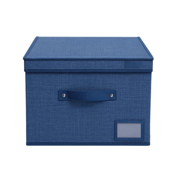 Scatola salvaspazio portaoggetti con coperchio, in tessuto di colore Blu con misura pari a 30x30x30 cm, munita di maniglia e portaetichetta, ideale per organizzare i vestiti, libri, accessori e qualsiasi cosa desideri nell'armadio della tua camera da letto, cameretta del tuo bambino o in bagno.