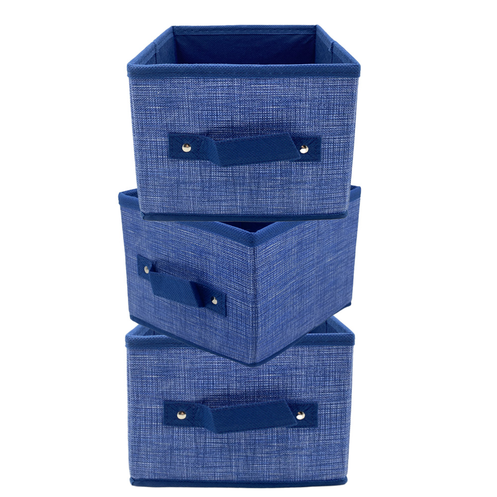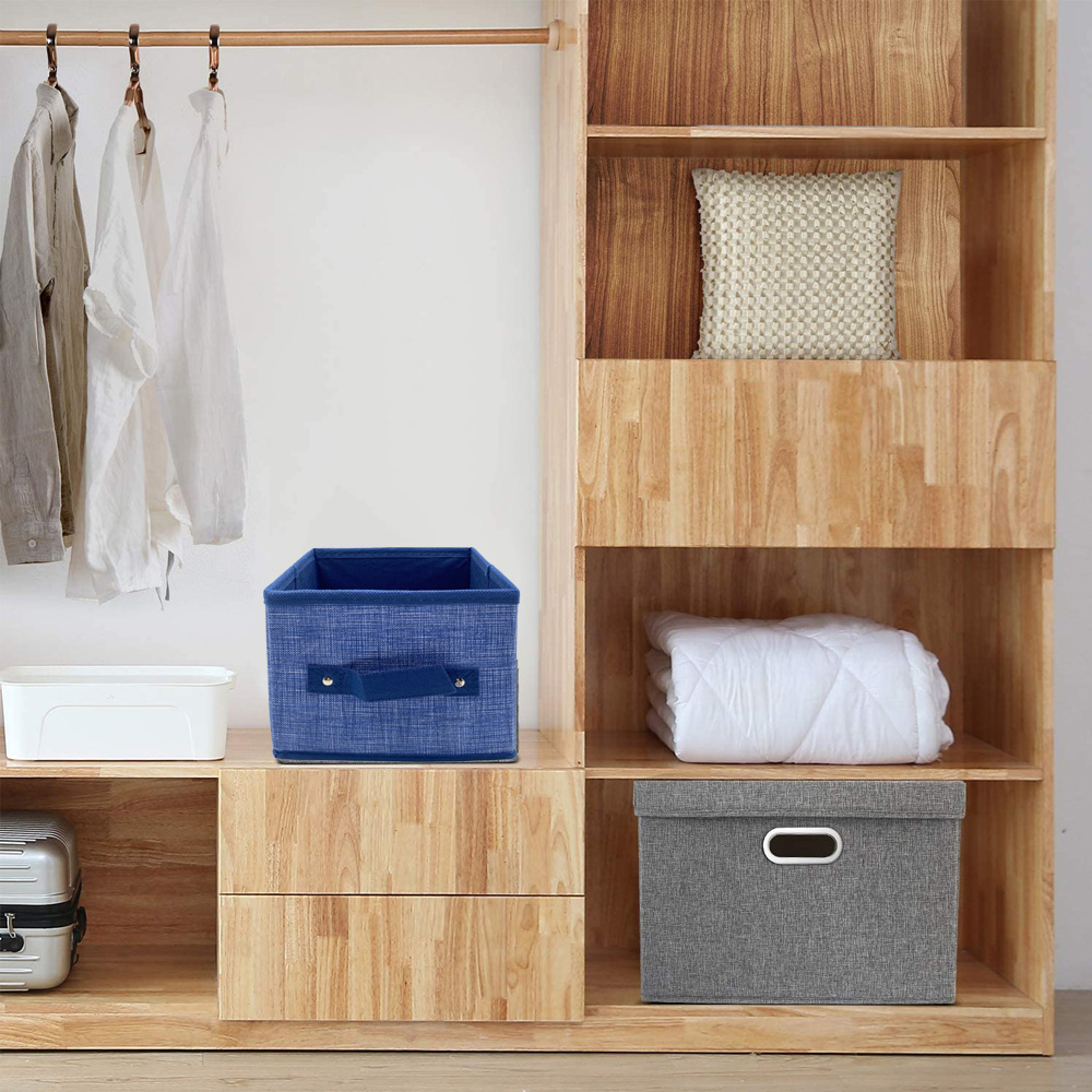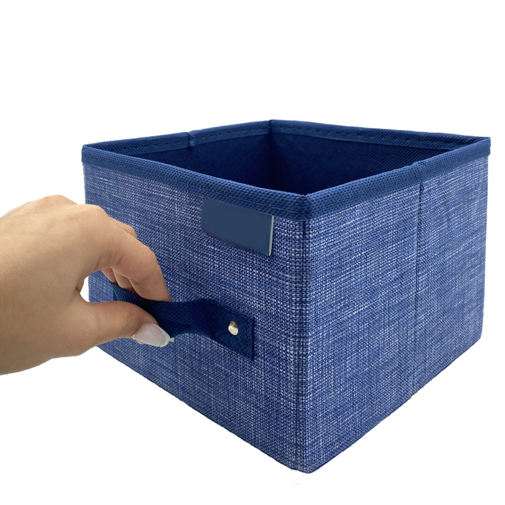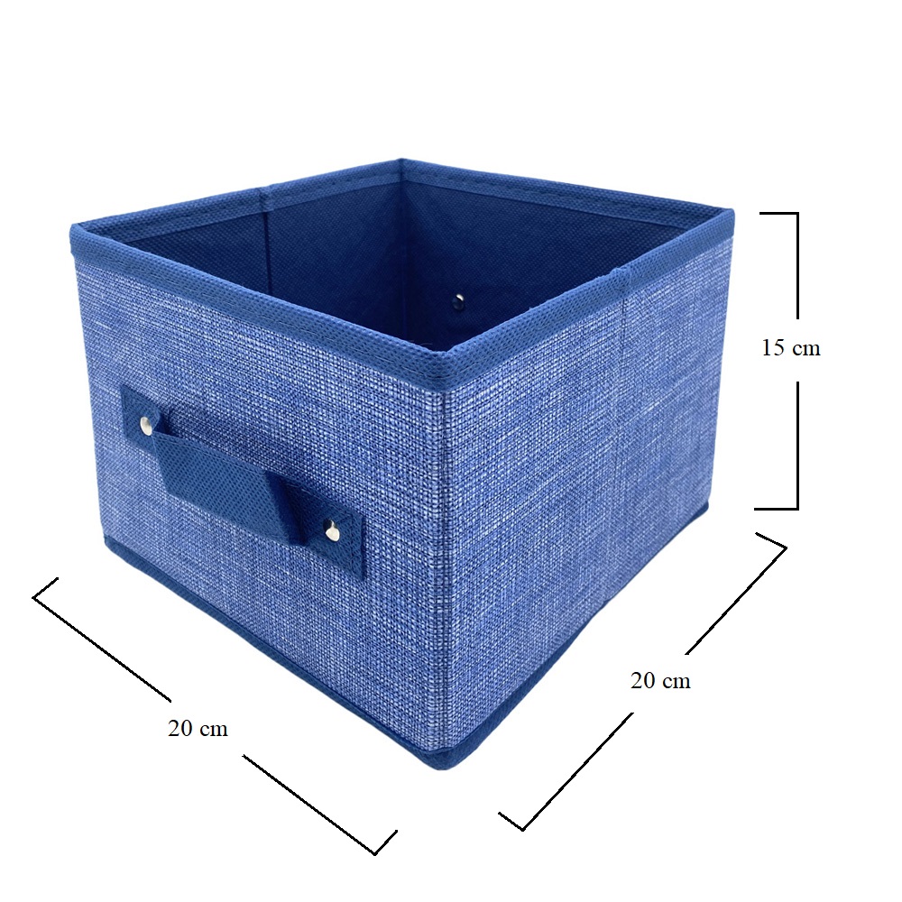 Scatola salvaspazio portaoggetti, in tessuto di colore Blu con misura pari a 20X20X15 cm, munita di maniglia e portaetichetta, ideale per organizzare i vestiti, libri, accessori e qualsiasi cosa desideri nell'armadio della tua camera da letto, cameretta del tuo bambino o in bagno.