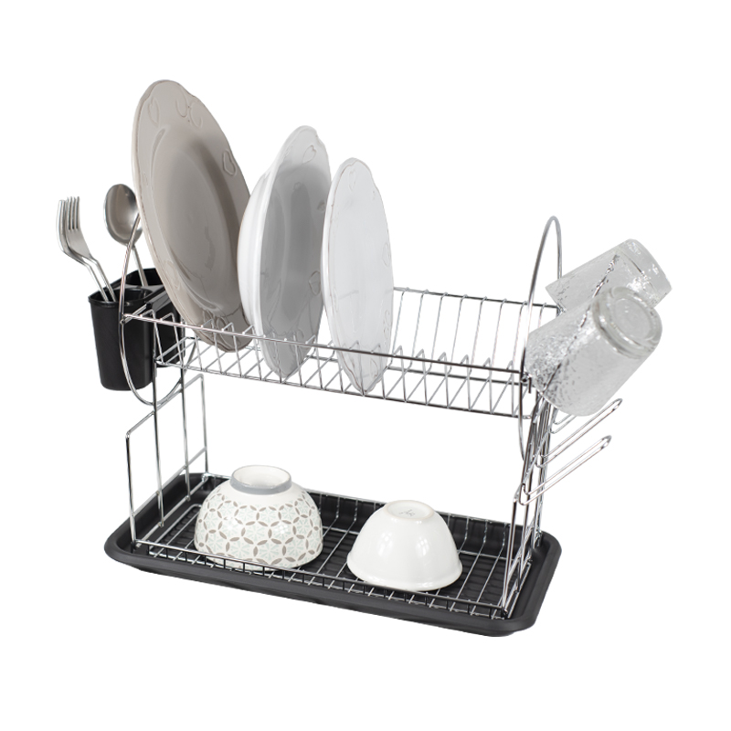 Scolapiatti da appoggio a 2 ripiani con vassoio e portaposate - Misura 51x24x36cm