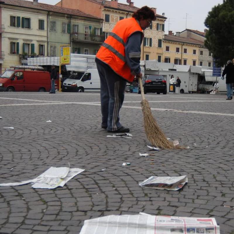 Scopa in legno naturale di bamboo resistente con manico da 142 cm e 18 setole in Bambù per pulizia giardino e strade