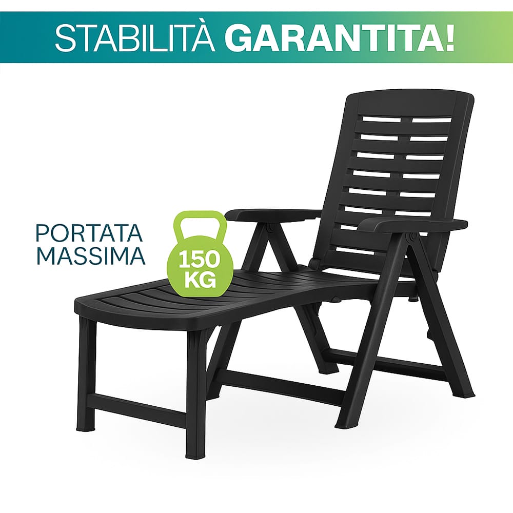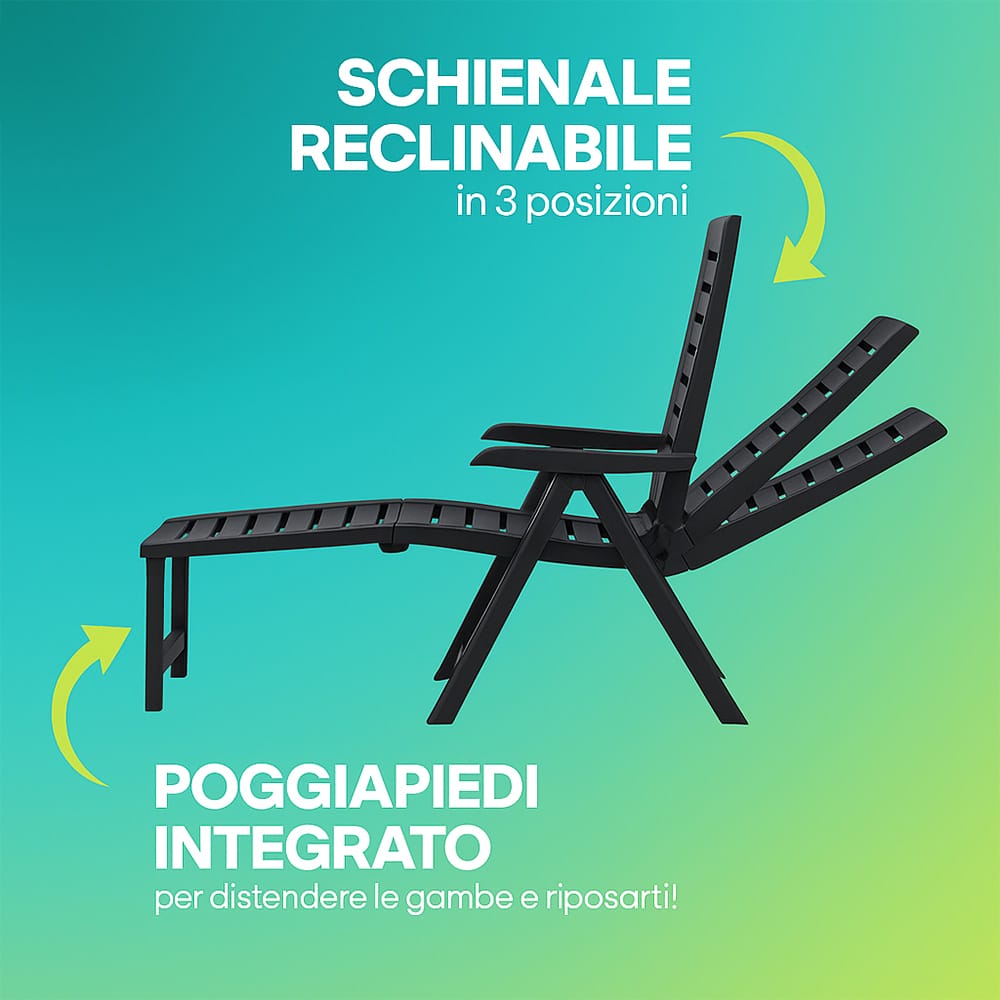Sdraio in plastica con poggiapiedi 60x108x109 cm