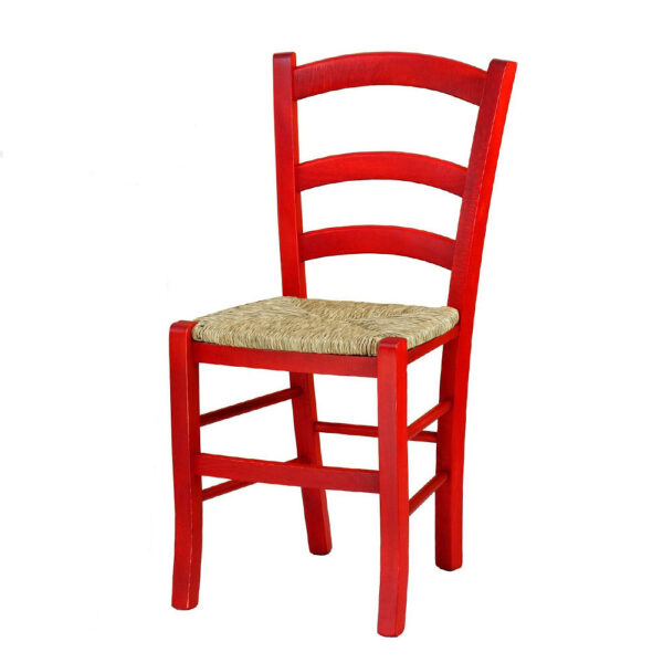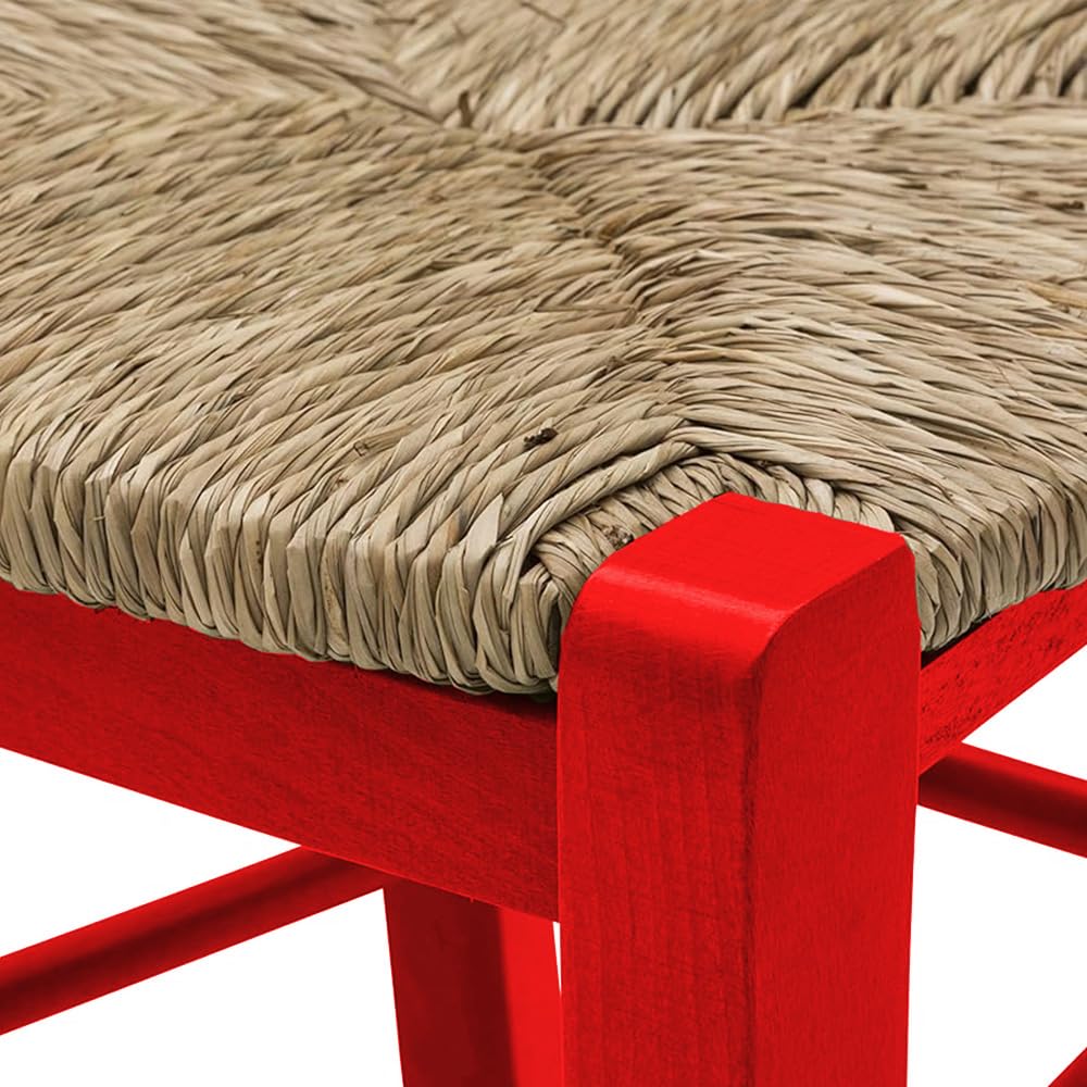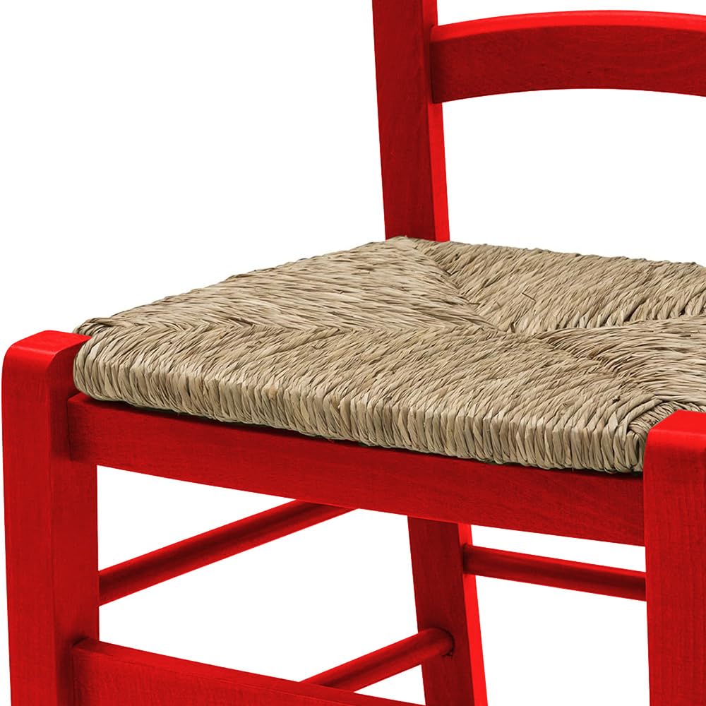 Sedia paesana Rossa in legno verniciato con seduta in paglia, dimensioni pari a 43x42x86 cm, ideali per la tua casa, esterno, per ristoranti, agriturismi ecc. Queste sedie offrono robustezza e durabilità nel tempo e il legno conferisce un aspetto elegante così da adattarsi ad ogni ambiente.