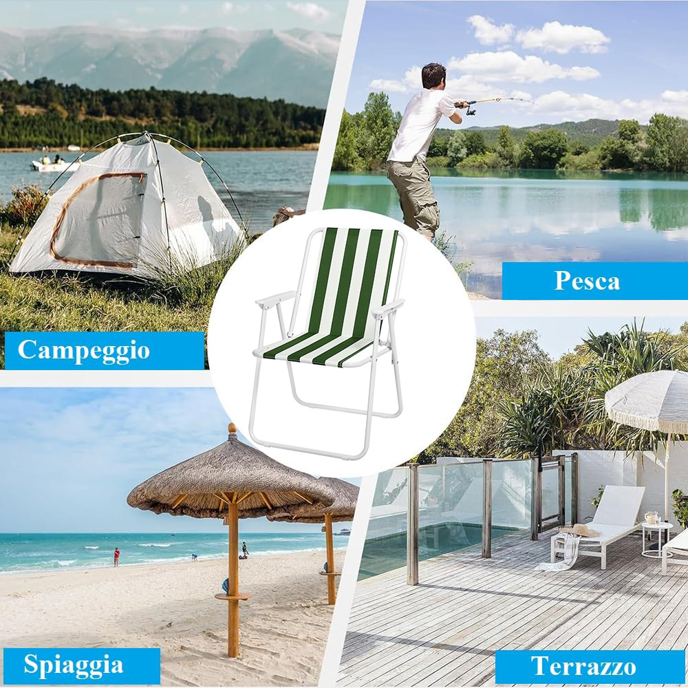 Sedia pieghevole da spiaggia di colore Verde e Bianco,