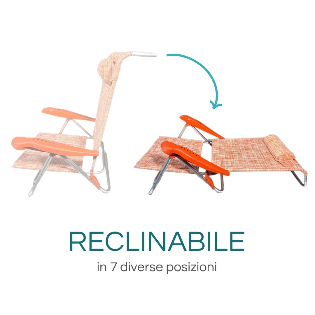 Il tessuto in textilene non solo assicura durata nel tempo, ma è anche estremamente facile da pulire a mano, mantenendo sempre la sedia fresca e pronta all'uso. Disponibile in un elegante colore arancione, questa spiaggina non è solo pratica ma anche esteticamente gradevole.
