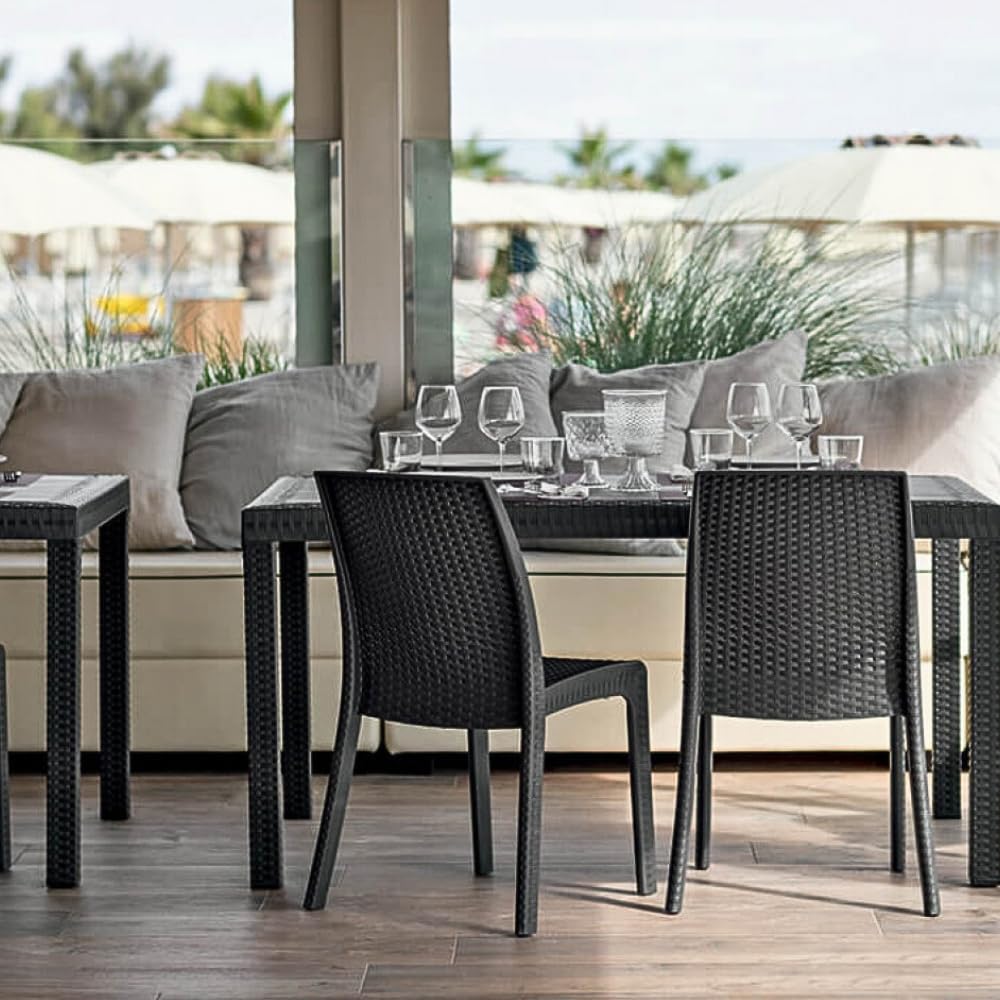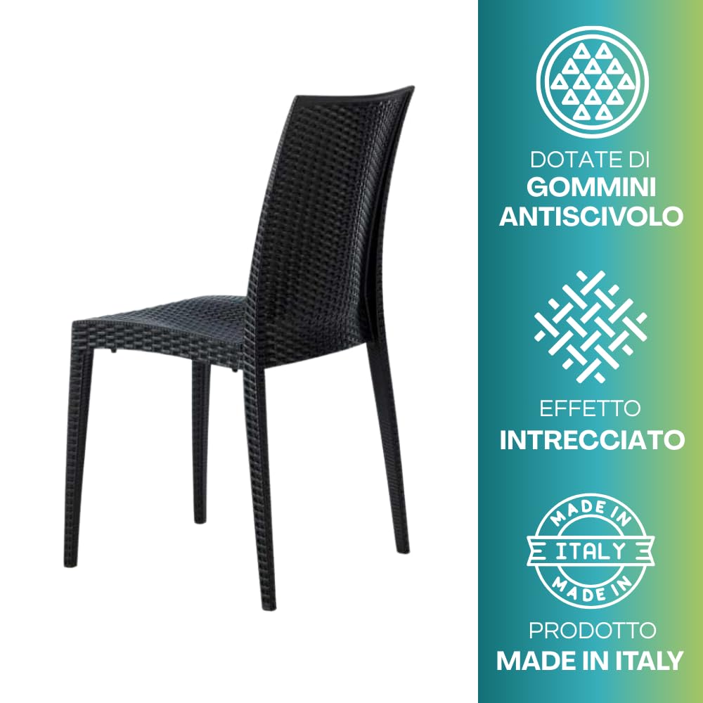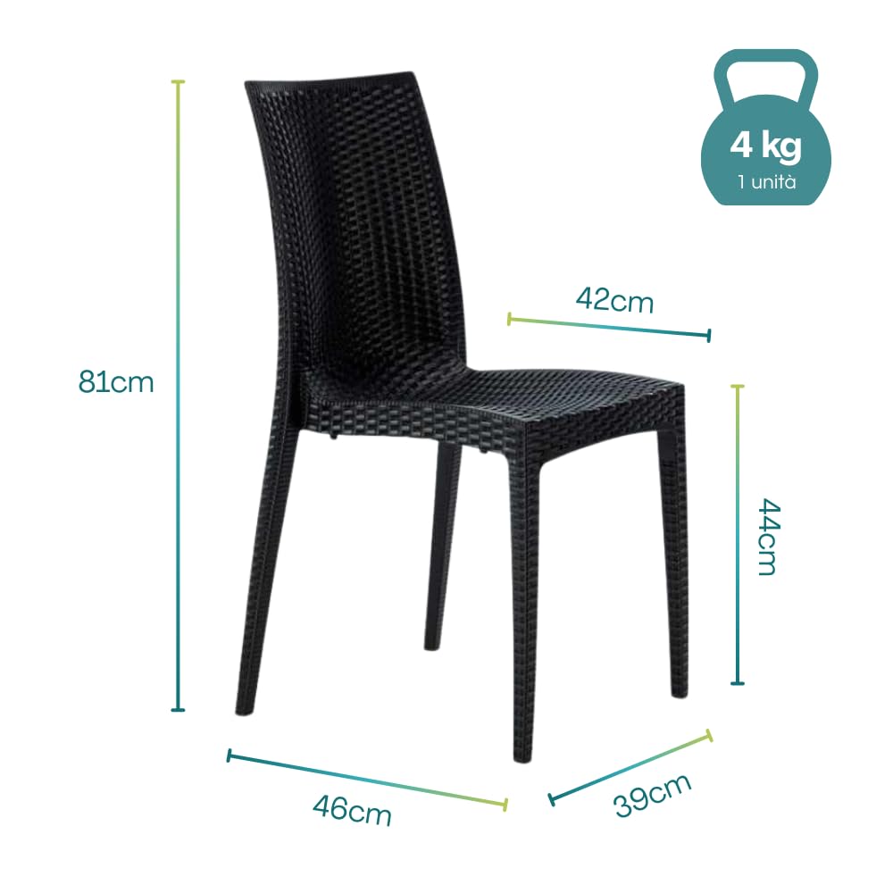 Sedia effetto rattan in polipropilene di colore Antracite, misura pari a 39x46x81 cm, ideali per qualsiasi tipo di evento sia all’interno che all’esterno o semplicemente da utilizzare come sedie ausiliari quando si hanno ospiti a casa. Made in Italy