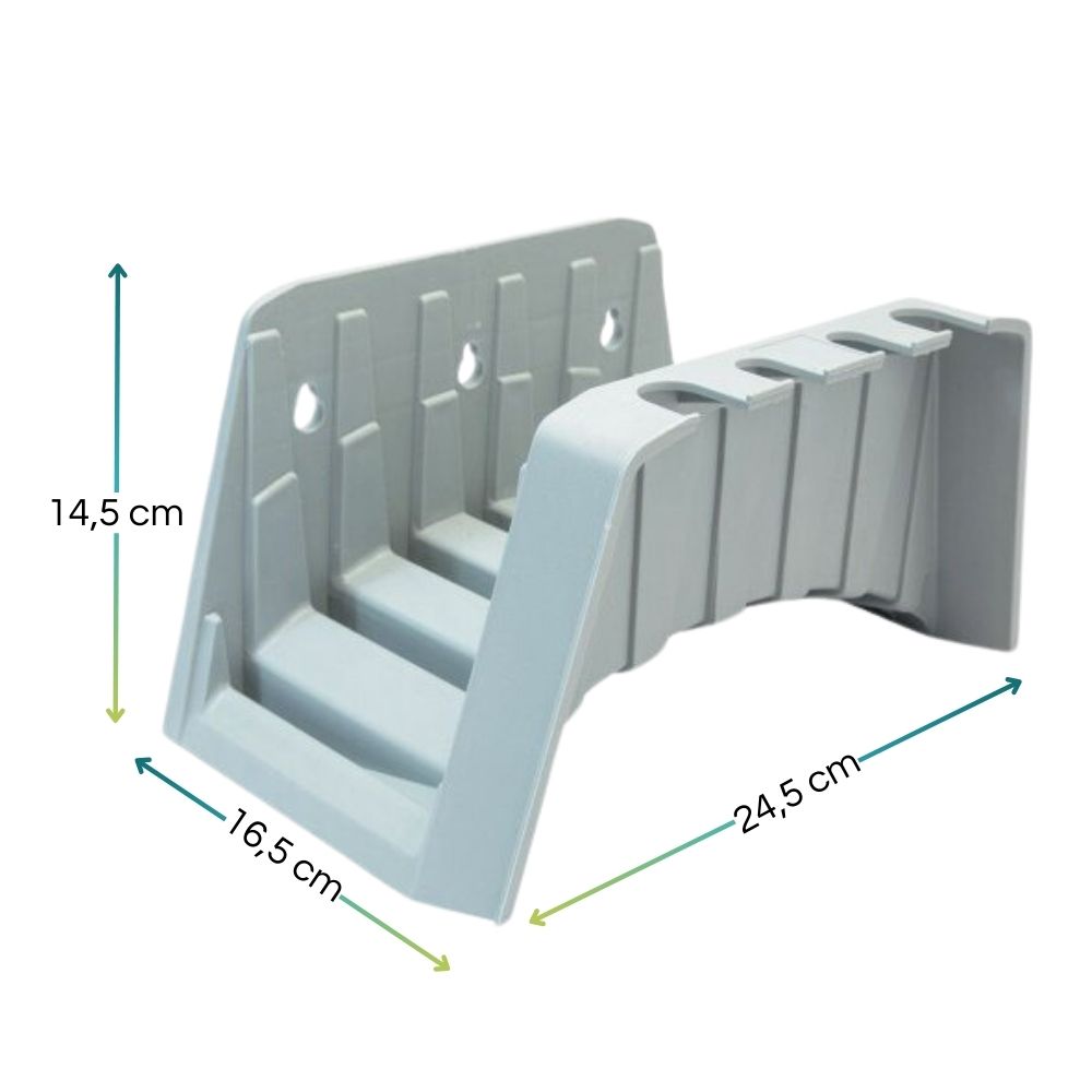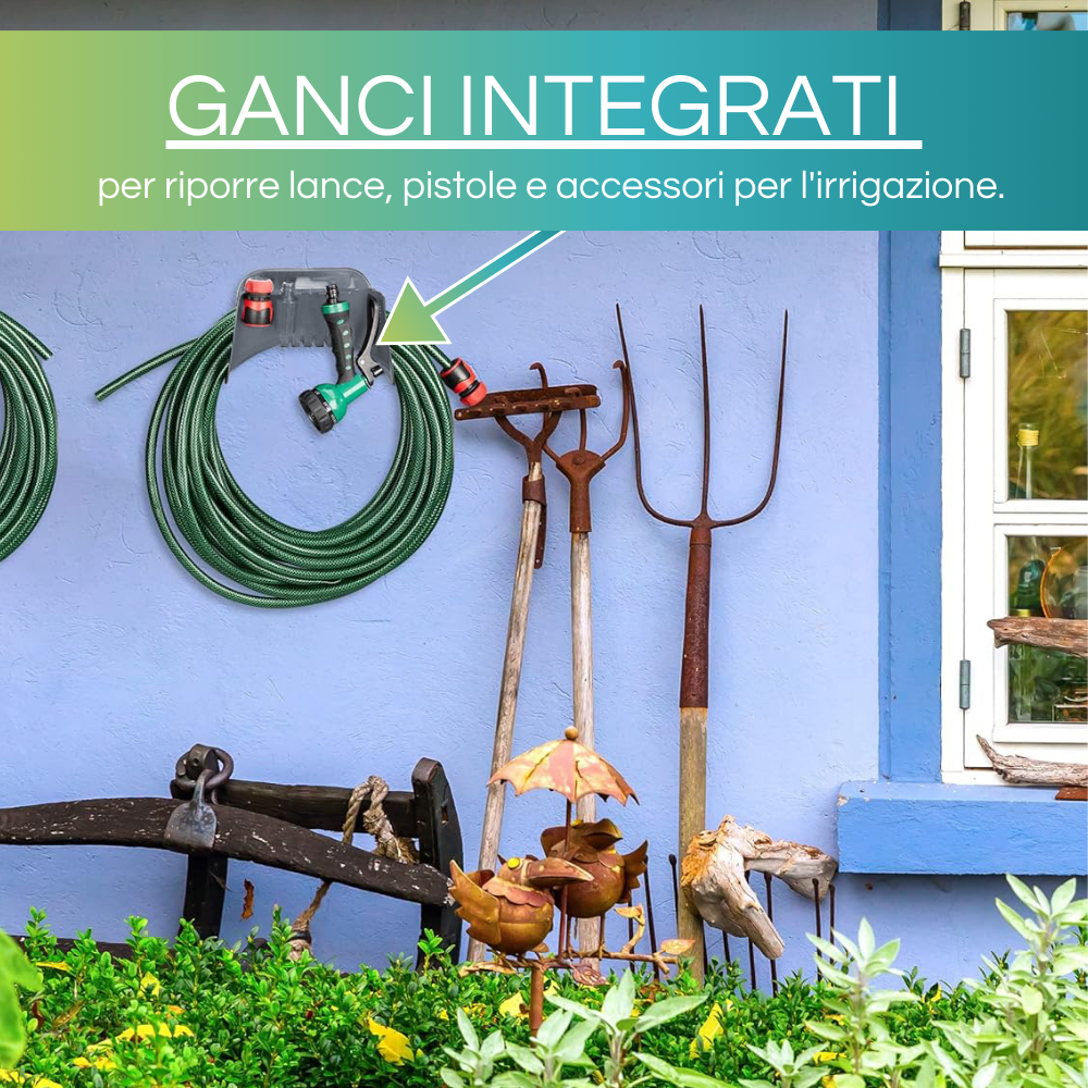 Spalla porta tubi idraulici da giardino in plastica con agganci per accessori e set da fissaggio - (C)
