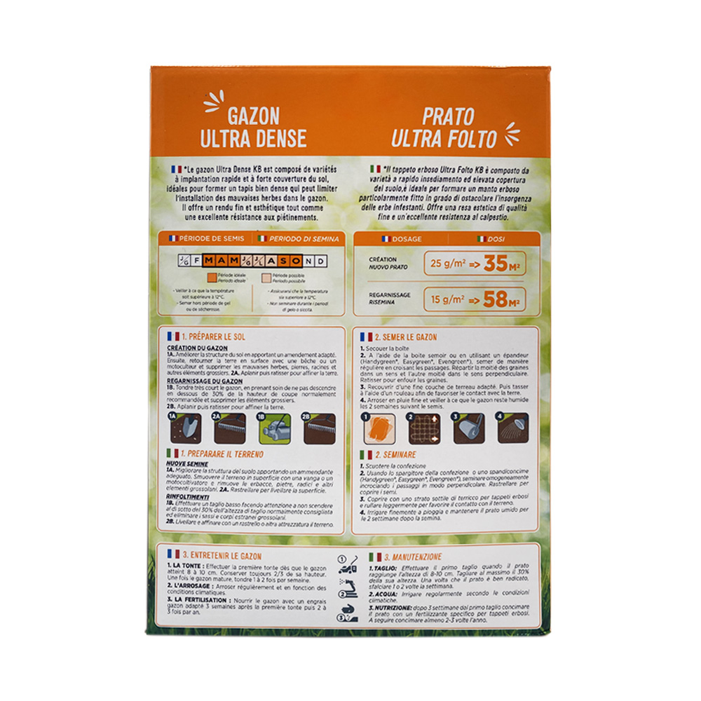 Semi per prato ultra folto da 875 gr - Sementi per prato folto con germinazione rapida 7 giorni - Copertura 35m²
