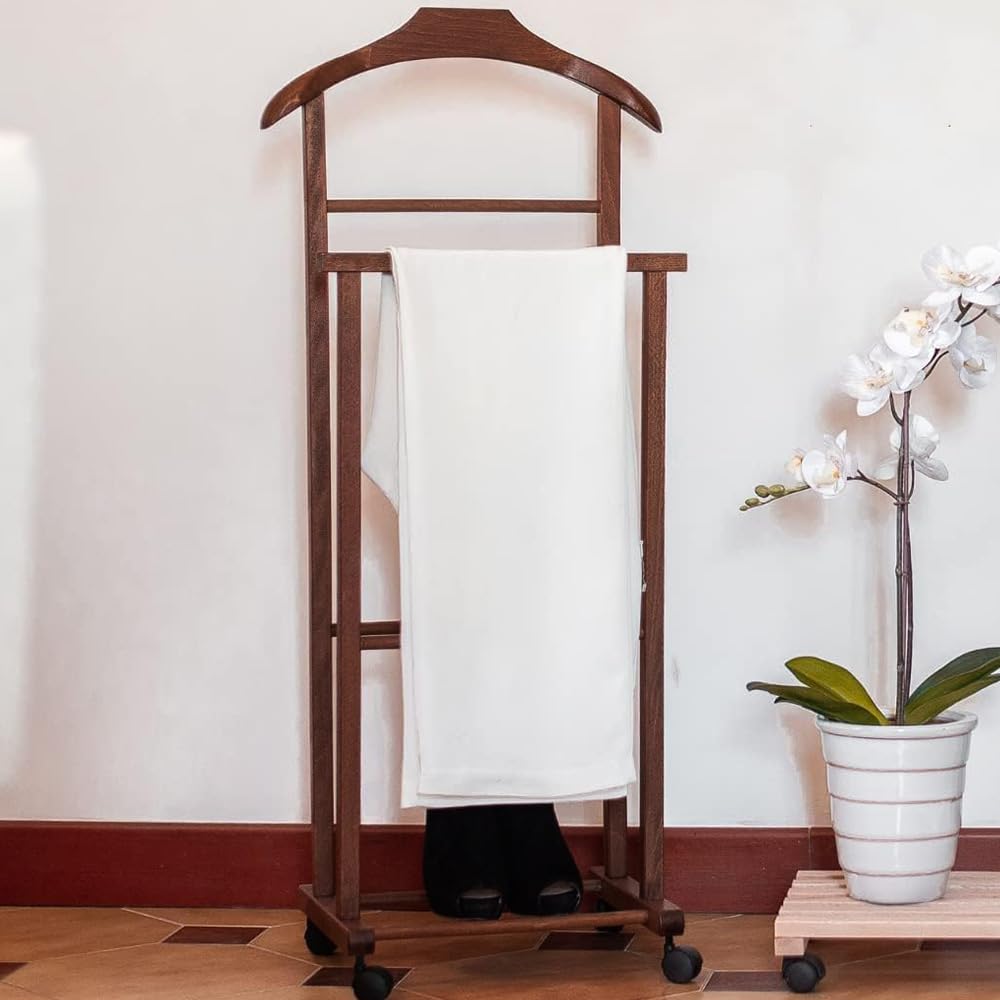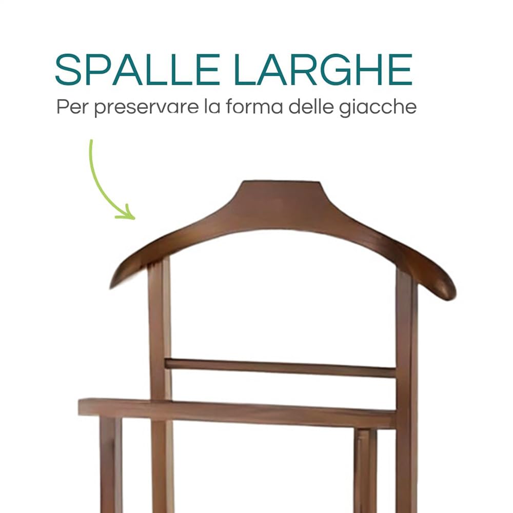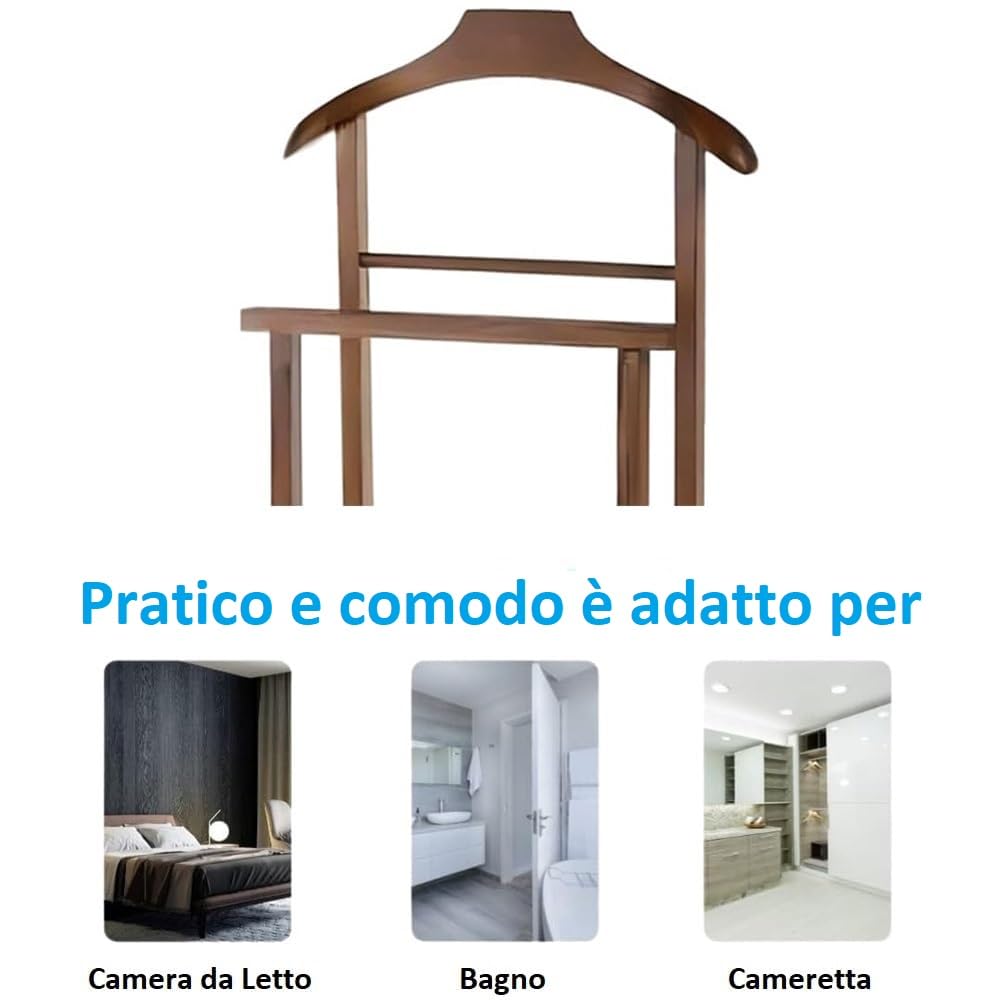 Il Servo Muto Da Camera In Legno, conosciuto anche come uomo morto appendiabiti, è un accessorio elegante e funzionale, perfetto per mantenere la tua stanza ordinata e i tuoi abiti impeccabili. Con un design moderno e due montanti robusti, questo omino appendiabiti fornisce ampio spazio per appendere giacche, cappotti e pantaloni senza preoccuparsi di pieghe indesiderate.