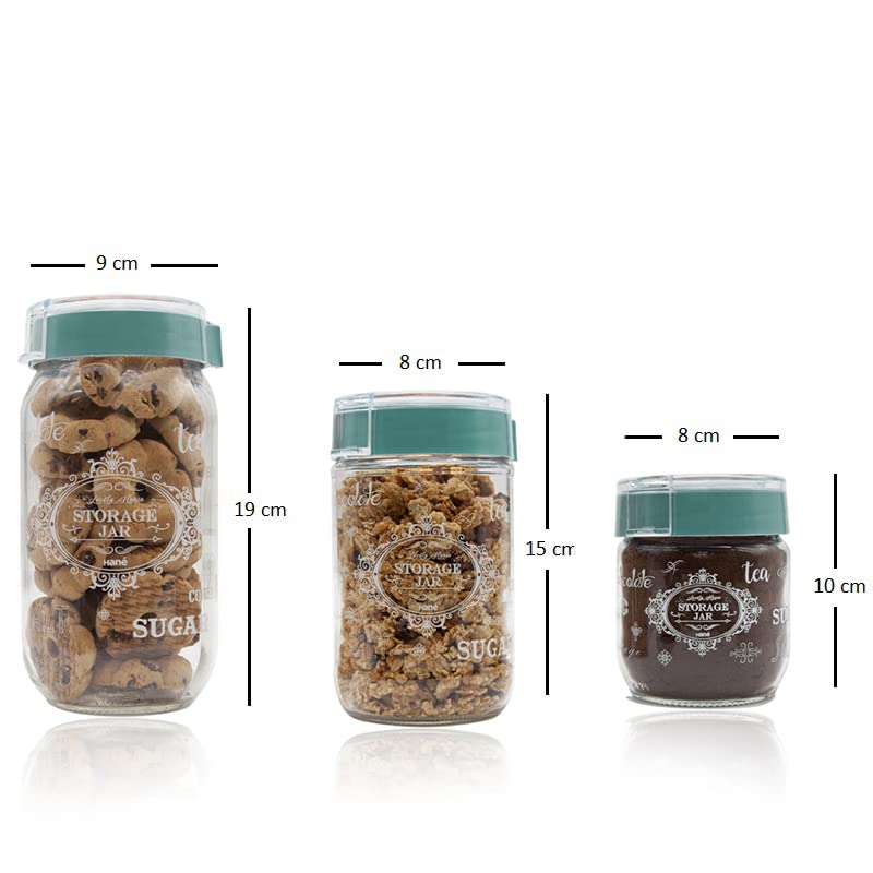 Set 3 Barattoli in Vetro con Scritte con capacità di 1000 ml, 660 ml e 625ml
