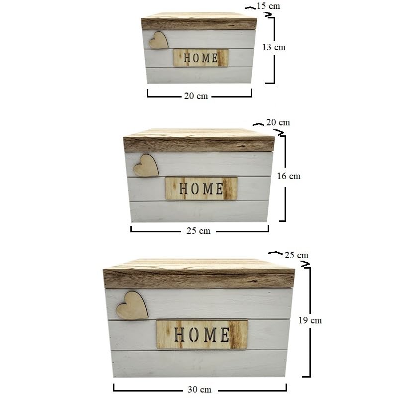 Set 3 scatole portaoggetti in Legno con coperchio e maniglie - Scatole impilabili Bianche Mis. 30x25x19 cm, 25x20x16 cm, 20x15x13 cm - Organizer per camera, cucina e bagno