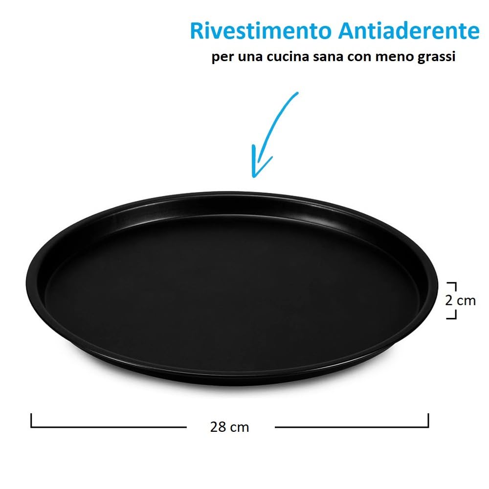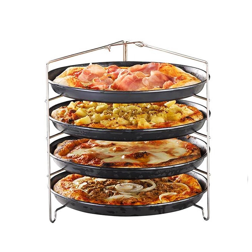 Set 4 teglie antiaderenti con supporto da forno - Teglie in acciaio da 28 cm con griglia porta teglie per pizza in Acciaio