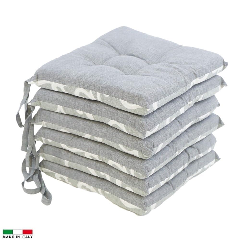 Set di 6 Cuscini per sedie in diversi colori e con fantasia, con misura pari a 40x40 cm, ideali per rivestire e proteggere le sedie della tua cucina o sala da pranzo. Perfetti per migliorare l'esperienza di seduta e aggiungere un tocco di eleganza al tuo ambiente domestico. Prodotto Made in Italy.I nostri cuscini per sedie sono disponibili nelle seguenti colorazioni: