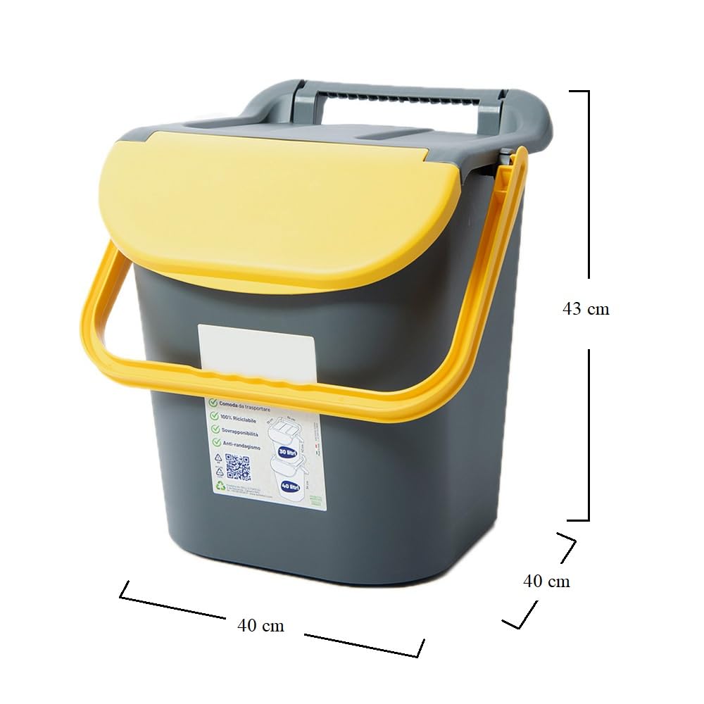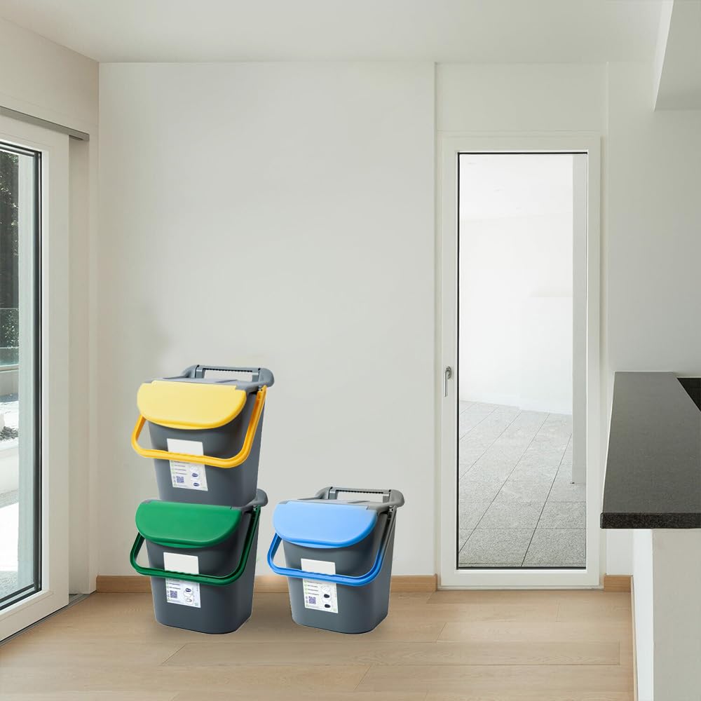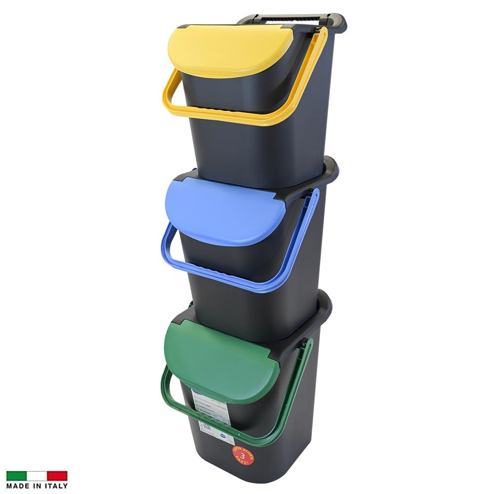 Set 3 Pattumiere a Torre per la raccolta differenziata - Misura 40x40x43 cm - Pattumiera impilabile con Capacità di 30 litri