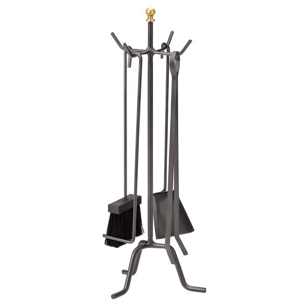 Set caminetto composto da 5 attrezzi per camino: Pala, Spazzola, Attizzatoio, Pinze e Supporto - Nero con sfumature