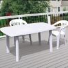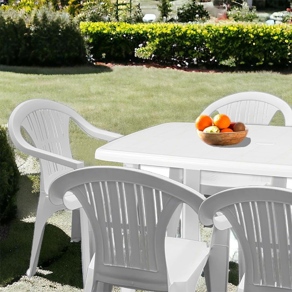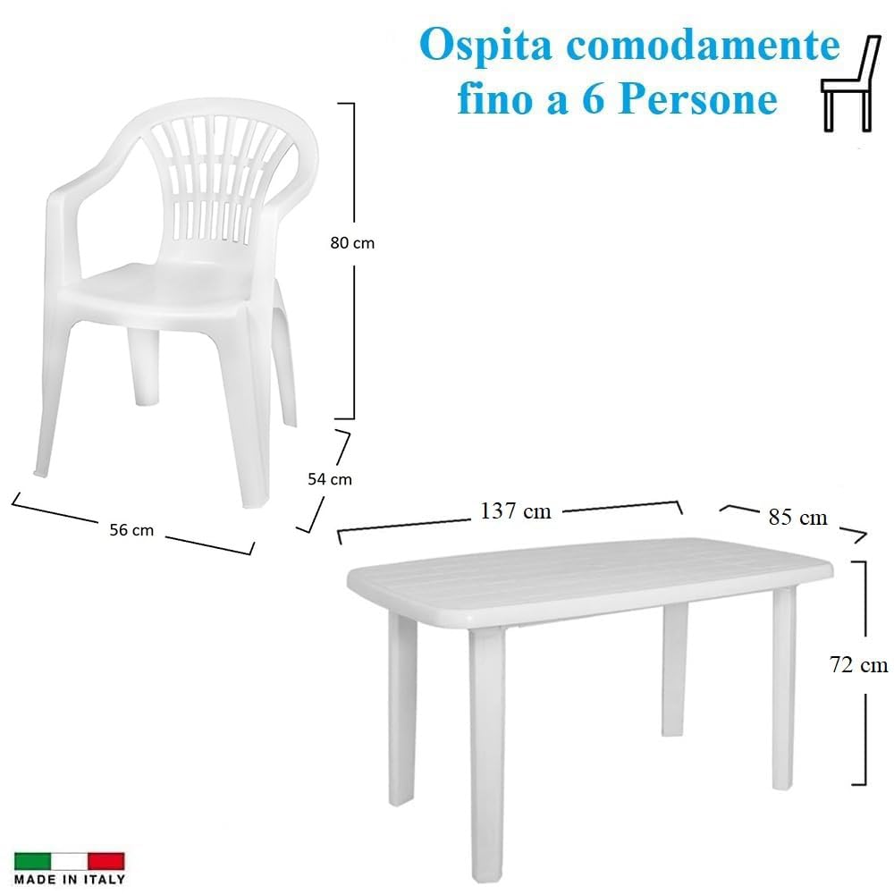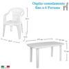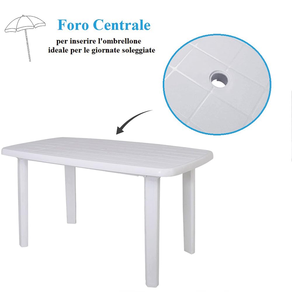 Set pranzo tavolo ovale e 6 sedie in plastica bianco - Tavolo con foro centrale per Ombrellone e sedie impilabili con braccioli