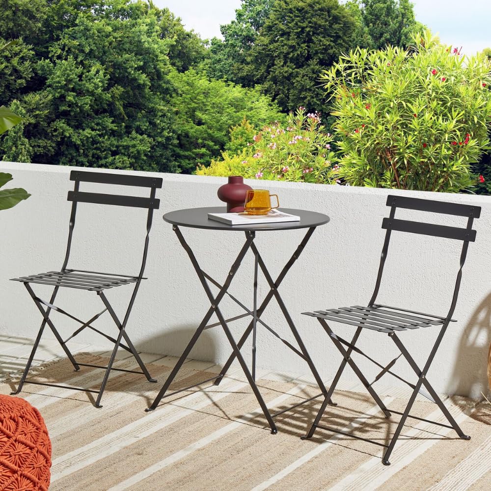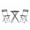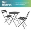 Realizzato in metallo di altissima qualità, il set bistrot è ideale per affrontare le intemperie quando collocato all’esterno. Ogni sedia presenta delle doghe curve per garantire il massimo confort di seduta.