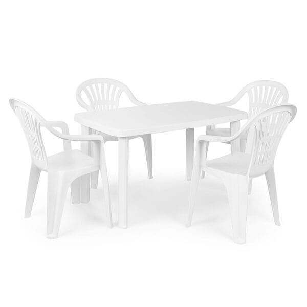 Set tavolo e 4 sedie da esterno in plastica