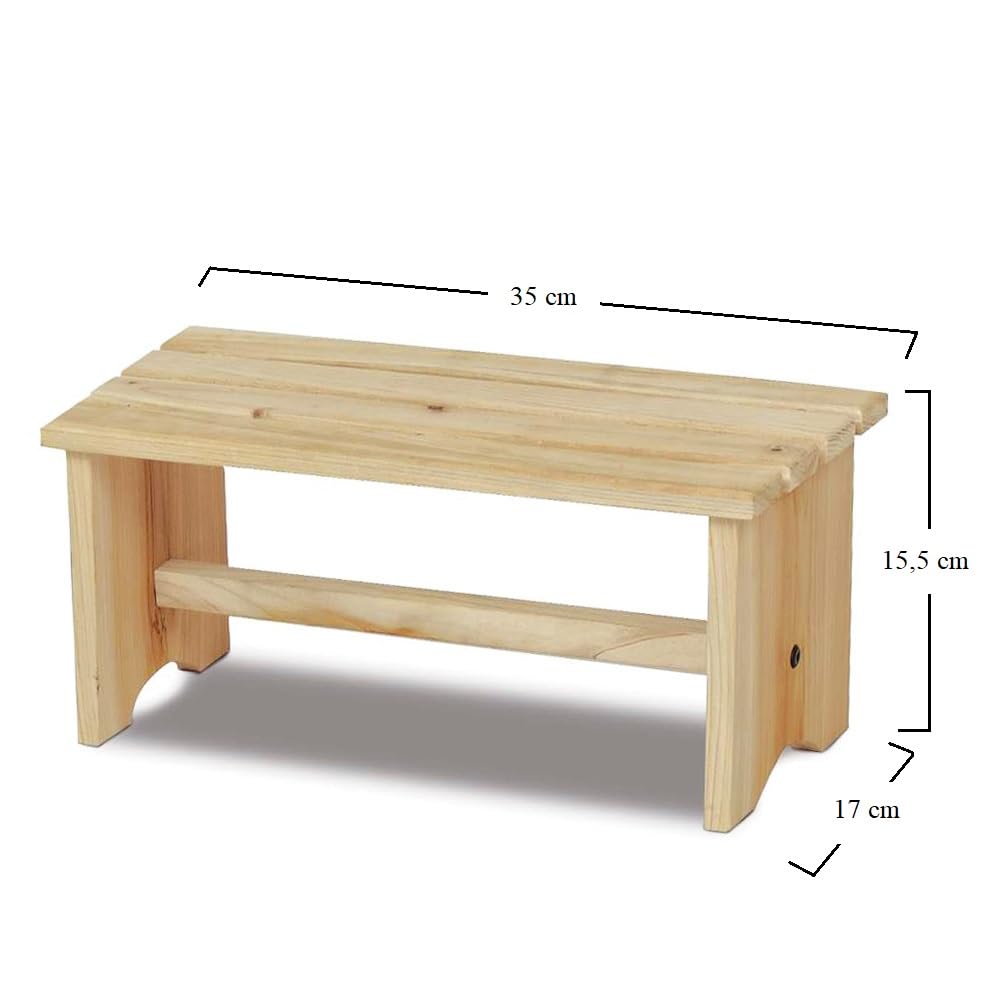 Sgabello poggiapiedi in legno naturale - Misura 35x17,5x15,5 cm - Panca sgabellino da seduta per esterno, poggiapiedi da scrivania per ufficio