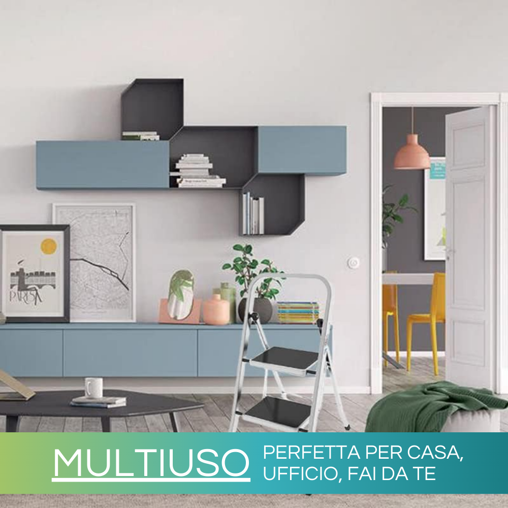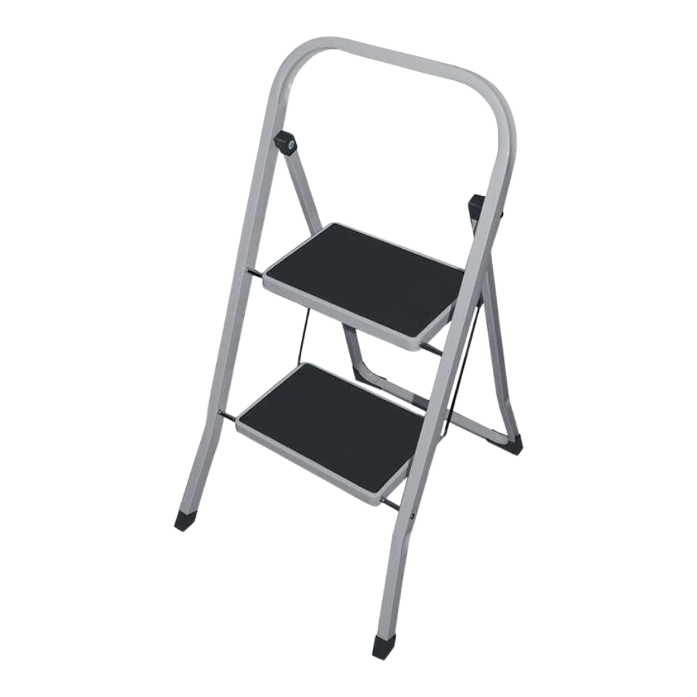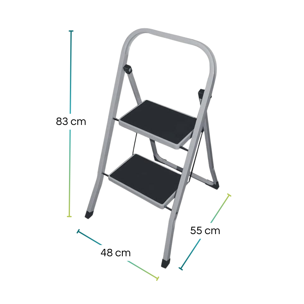 Scaletta pieghevole in metallo a 2 Gradini - Con piedi antiscivolo con portata massima di 150 Kg