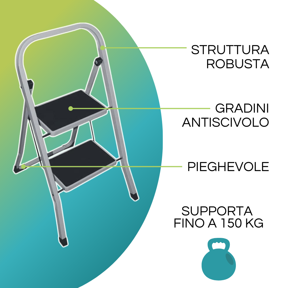 Scaletta a 2 gradini pieghevole portata 150 Kg