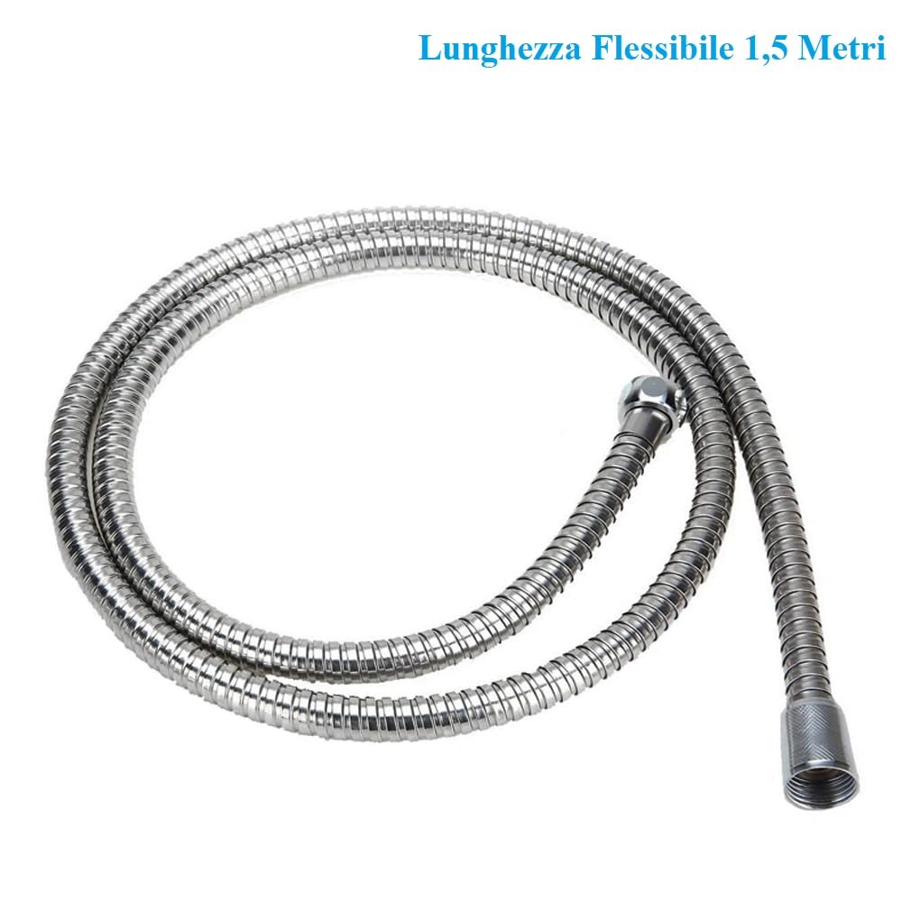 Set soffione doccia con flessibile ed asta, tubo da 1,5 metri e diametro 14 mm - Doccino universale cromato ad alta pressione a 3 funzioni