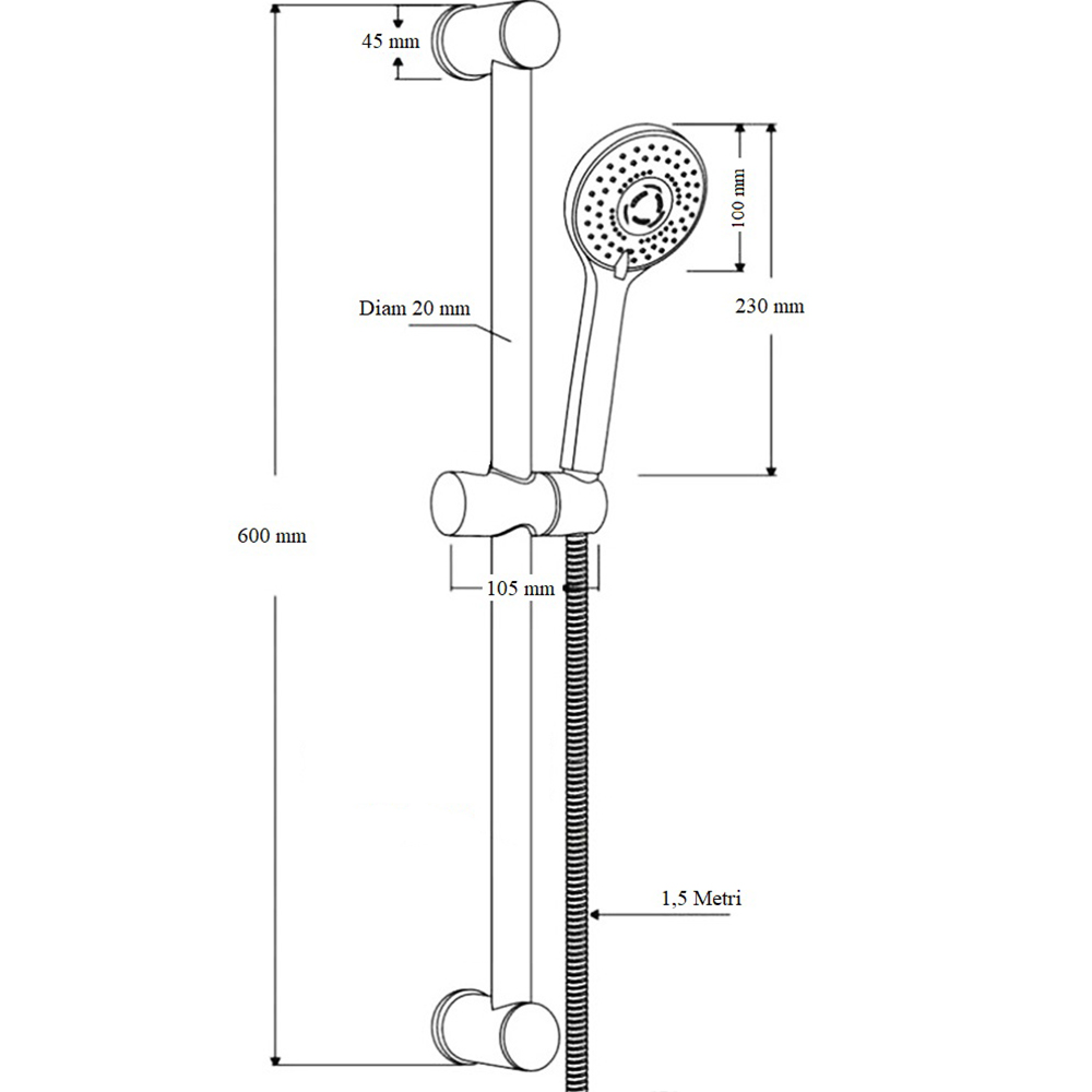Soffione doccia con tubo ed asta